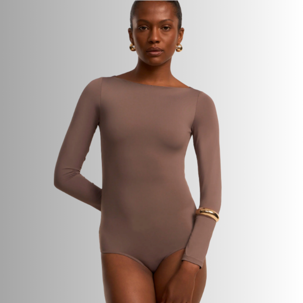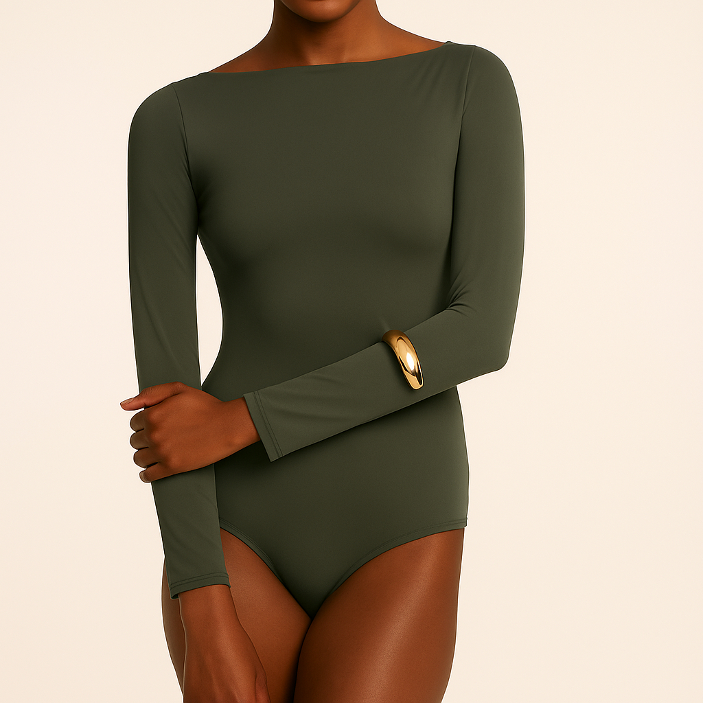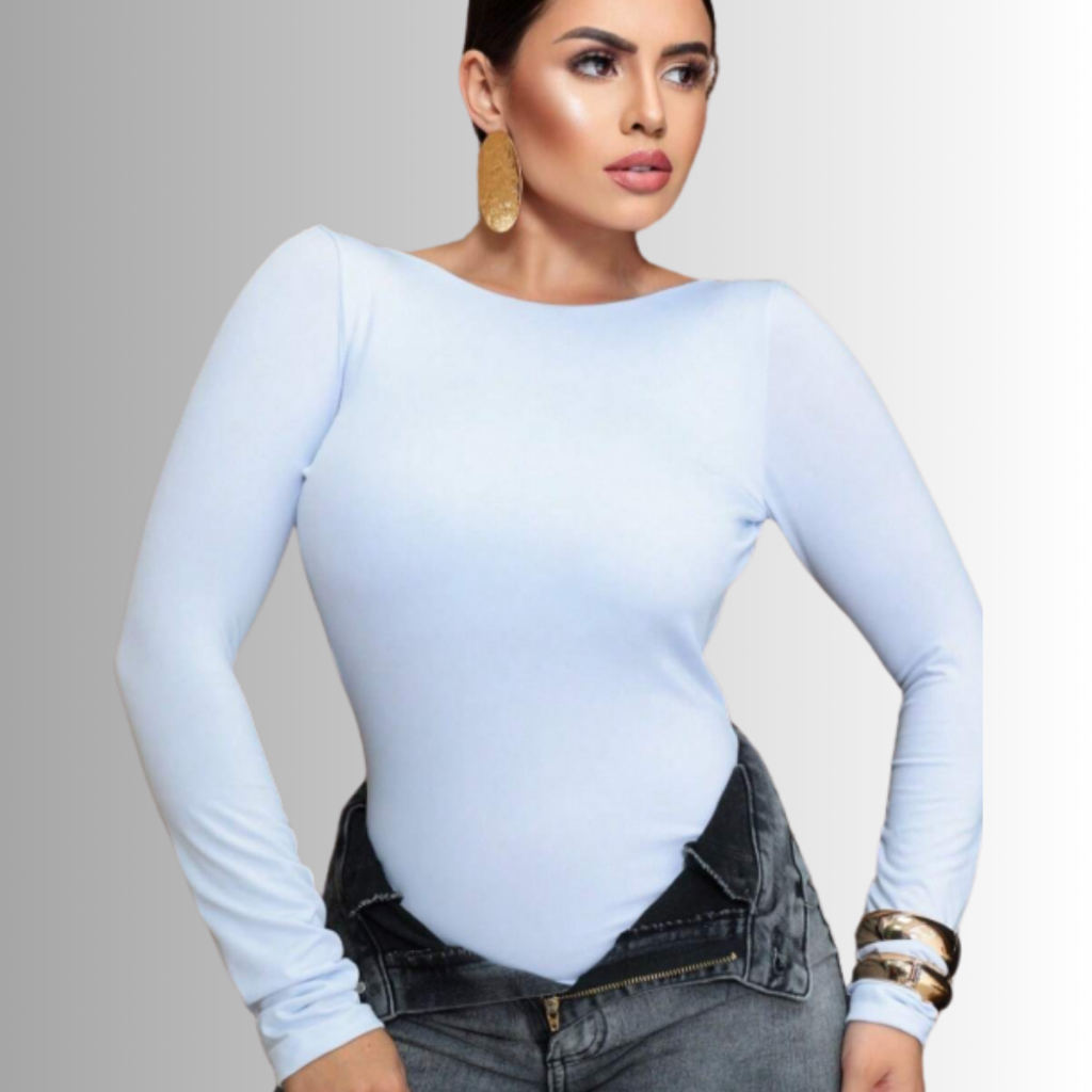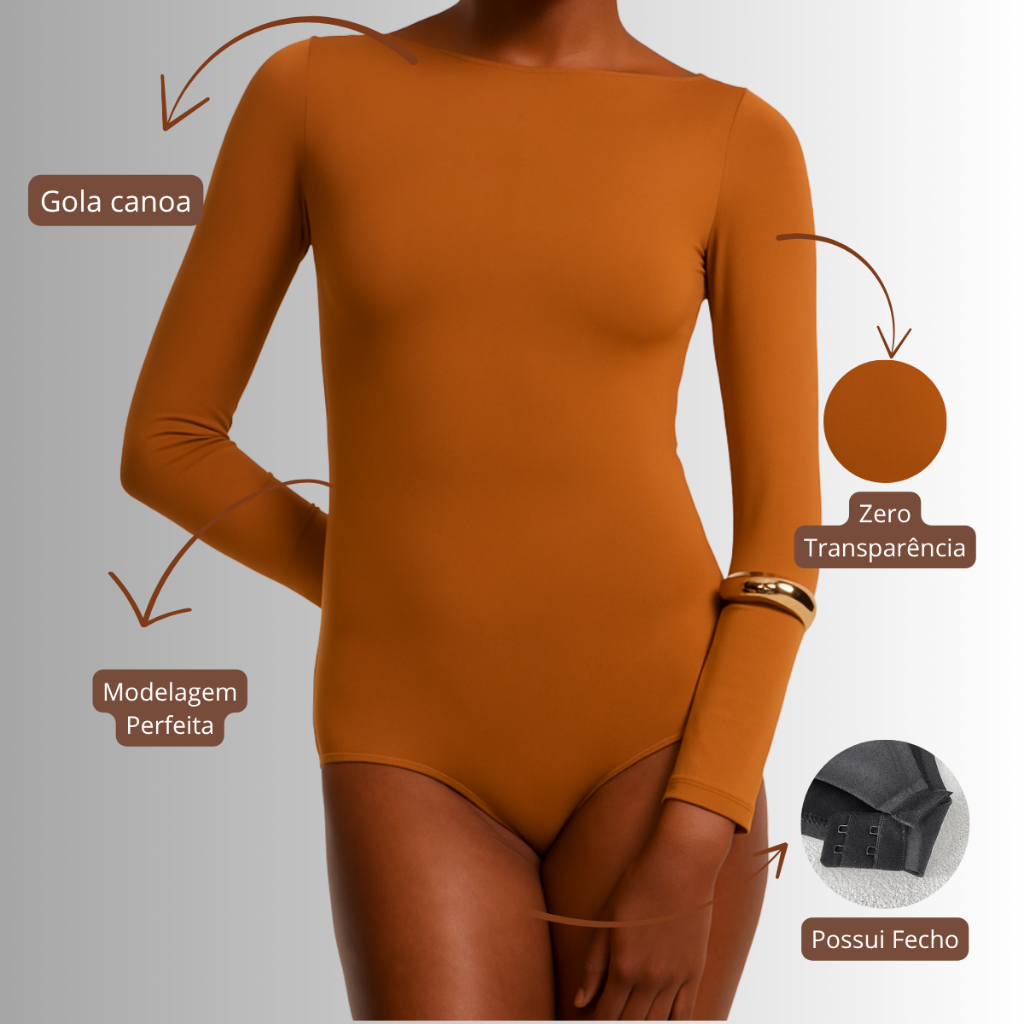 Body Manga Longa Feminino Gola Canoa Casual