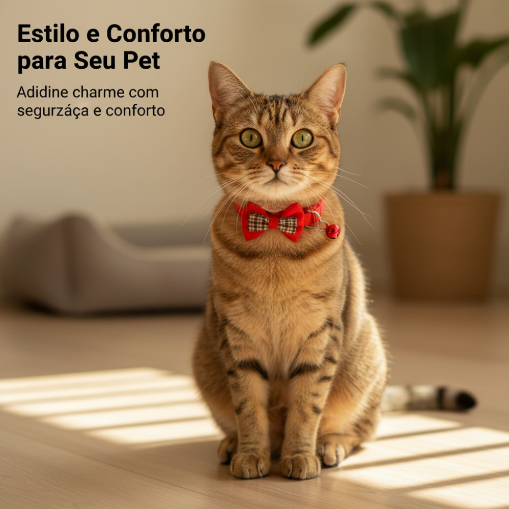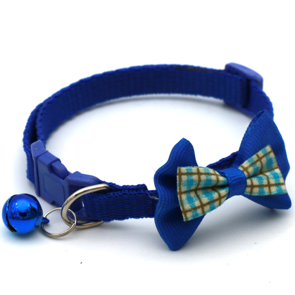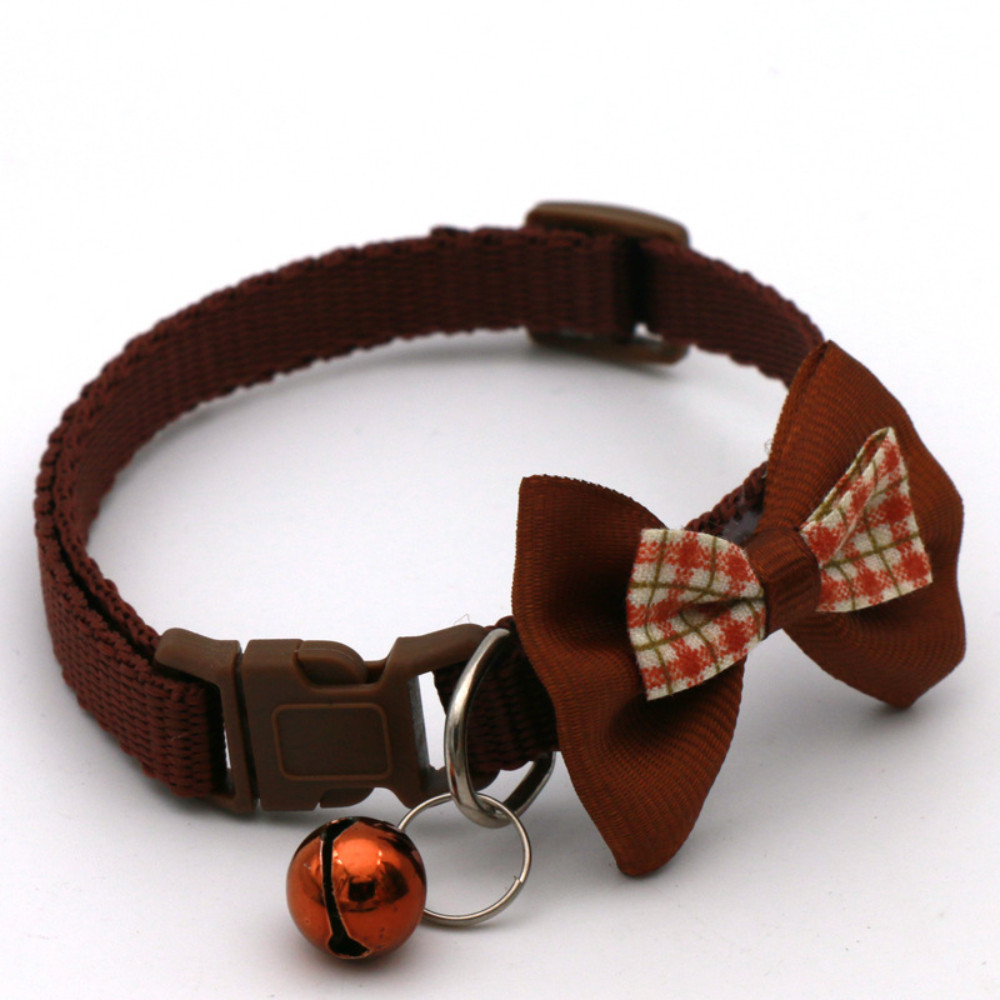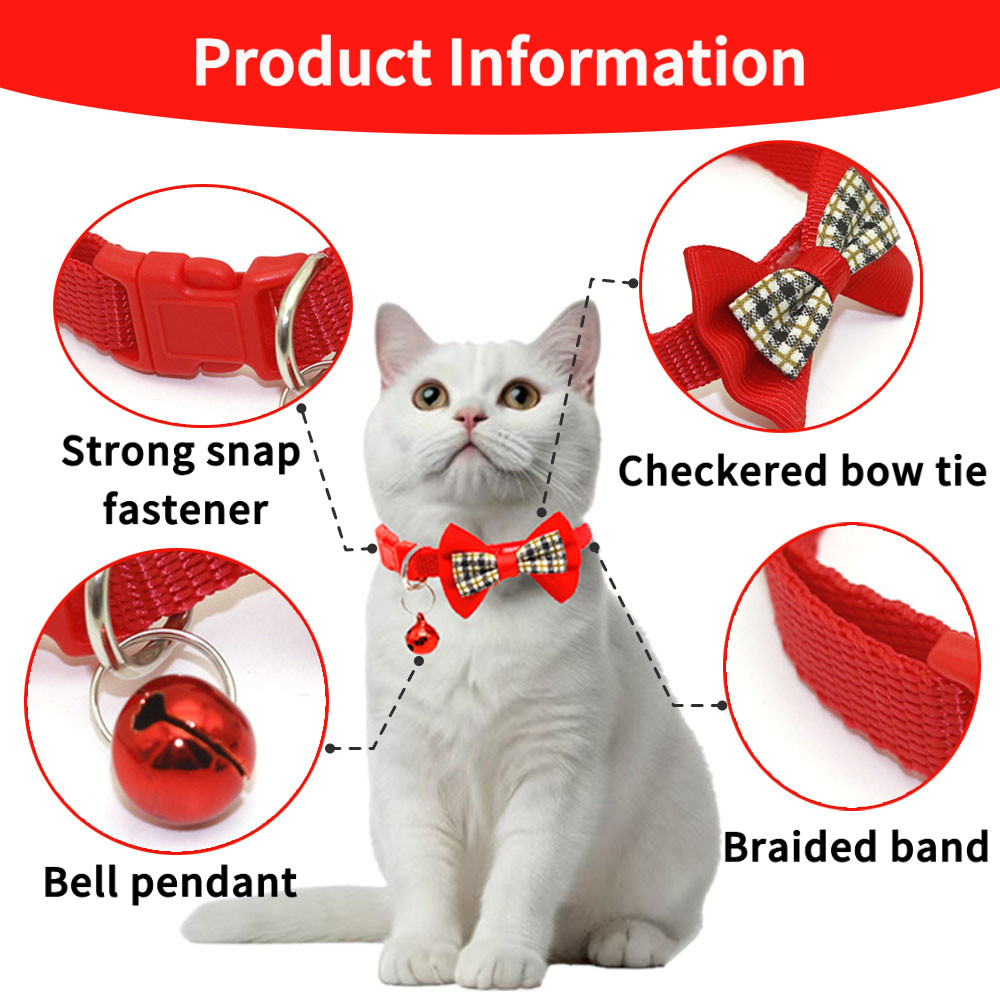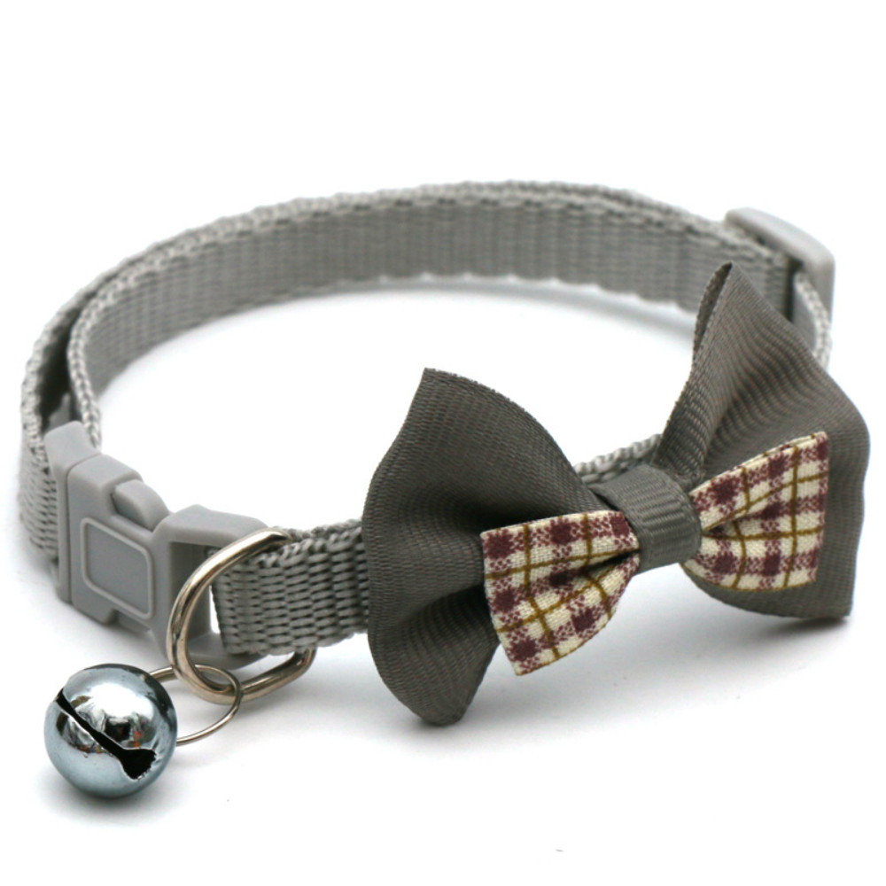 Coleira Pet Ajustável com Laço de Xadrez e Sino, Acessório Seguro para Gatinhos e Cachorros de Pequeno Porte