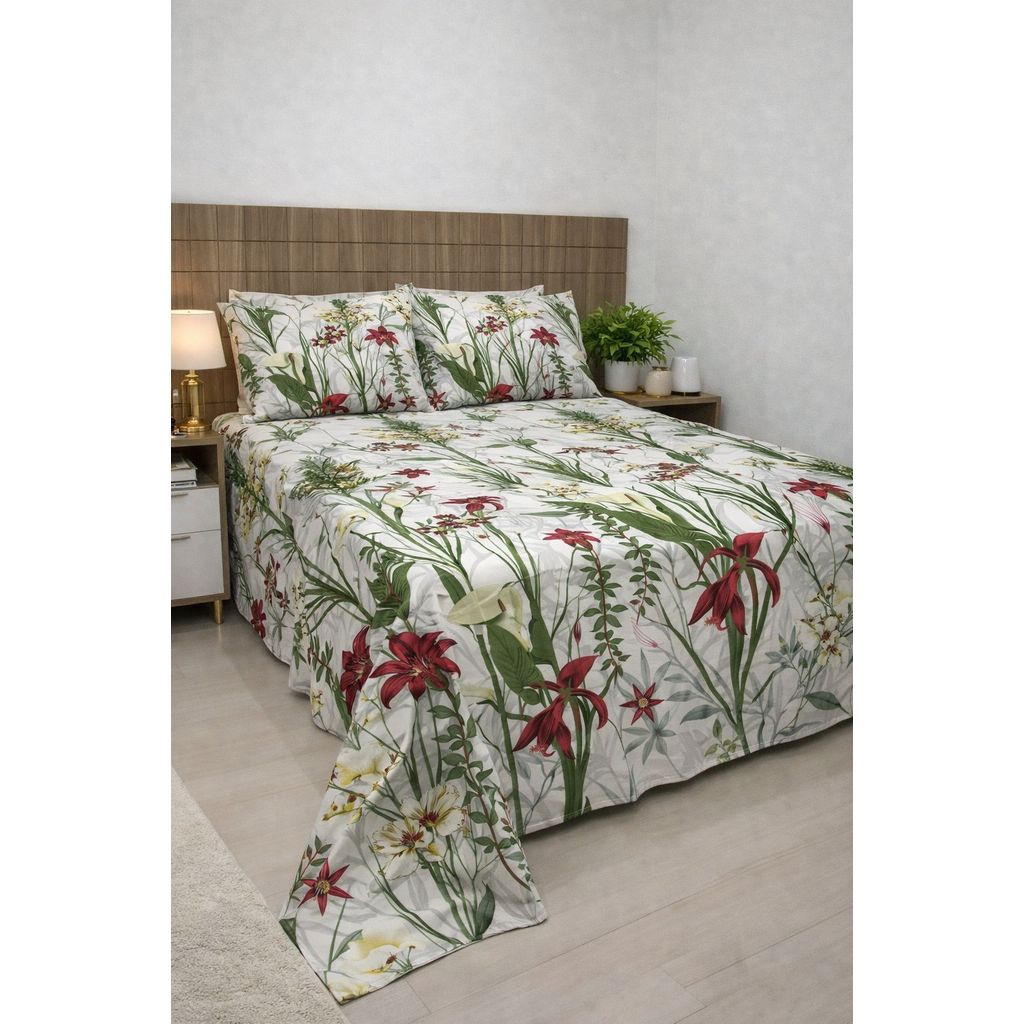 Lençol Casal Queen 600 Fios Toque de algodão Com 2 Fronha 2,30x2,50