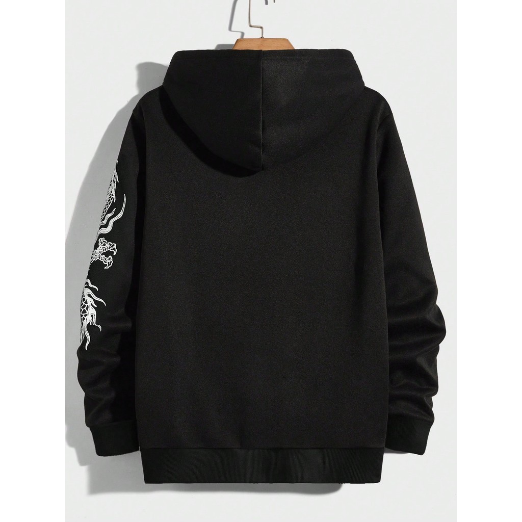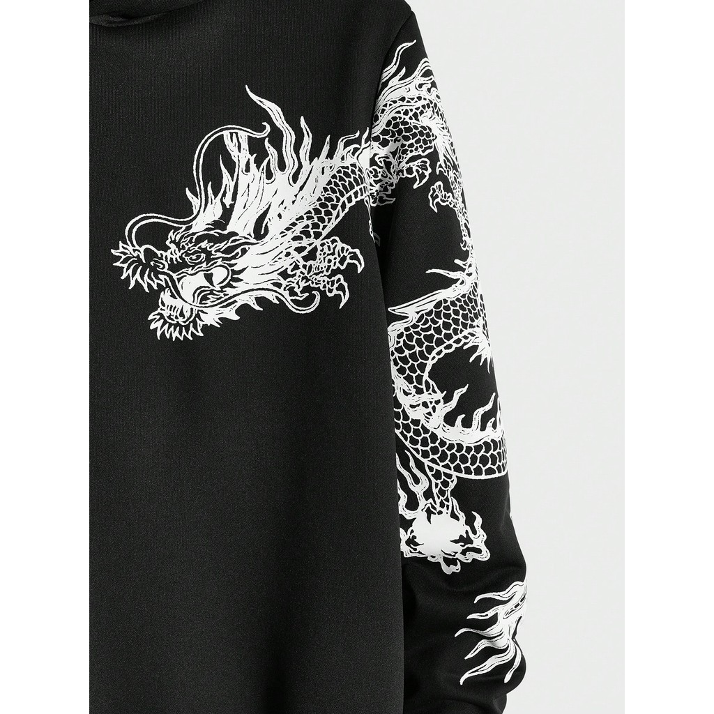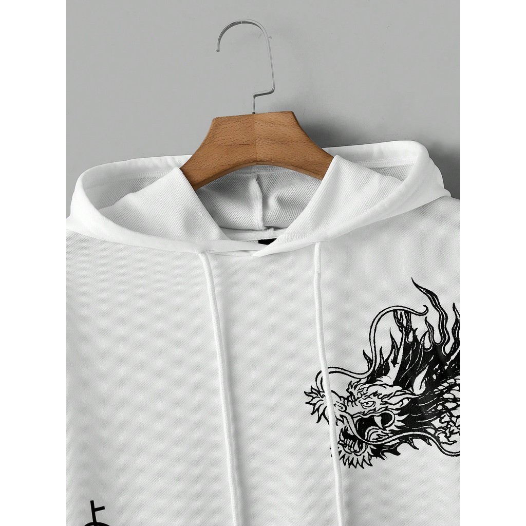 Moletom Com Capuz Estampa De Dragão Japonês Streetwear