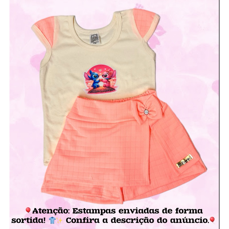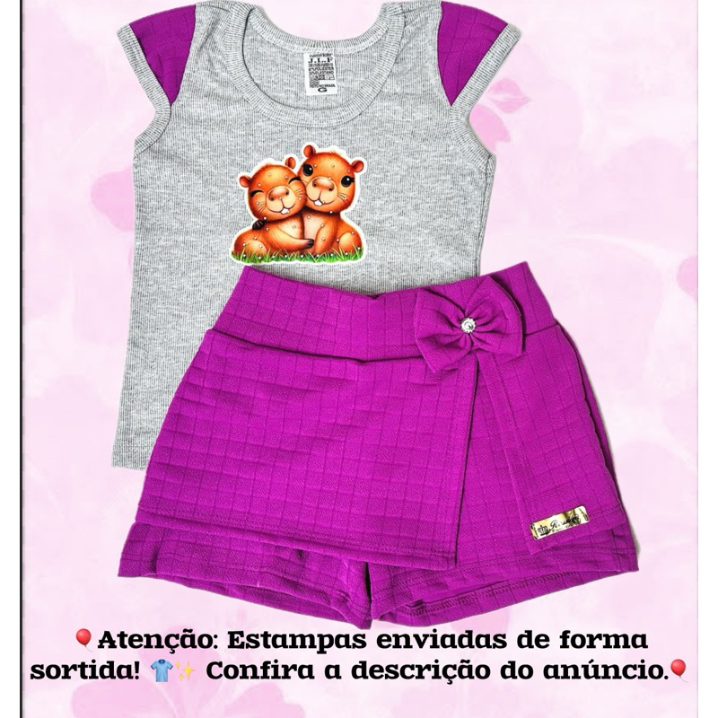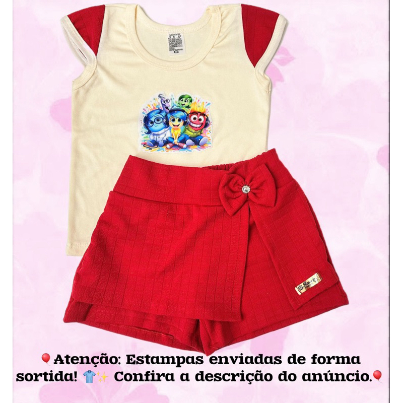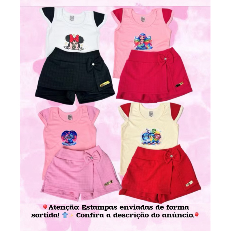 Conjunto Infantil Blusa e SHORT saia Estampa aleatoria Menina – Moda Verão Roupa Infantil Estilo Princesa Confortável