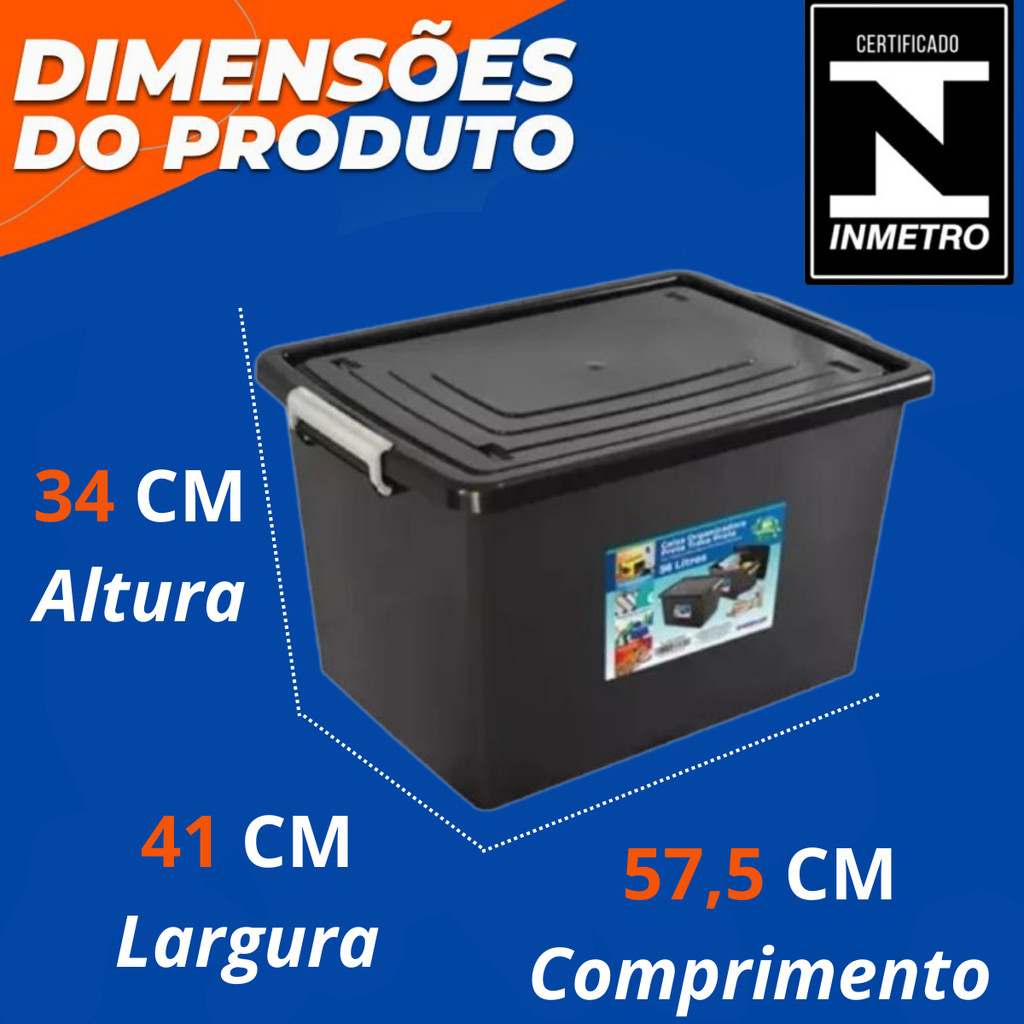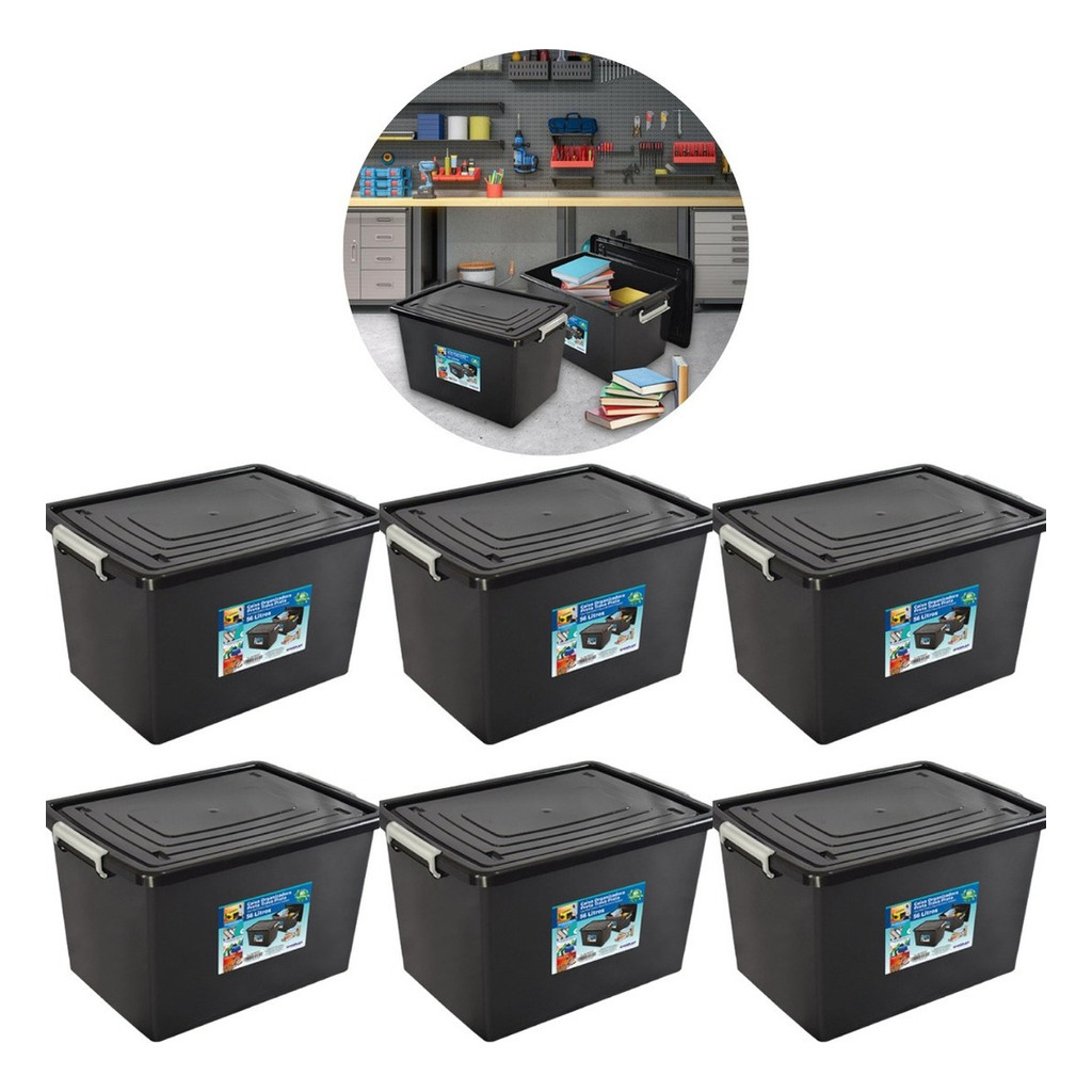 Kit 6 Caixas Organizadora Container Preta Com Tampa e Trava 56 Litros Cesto Organizador Preto