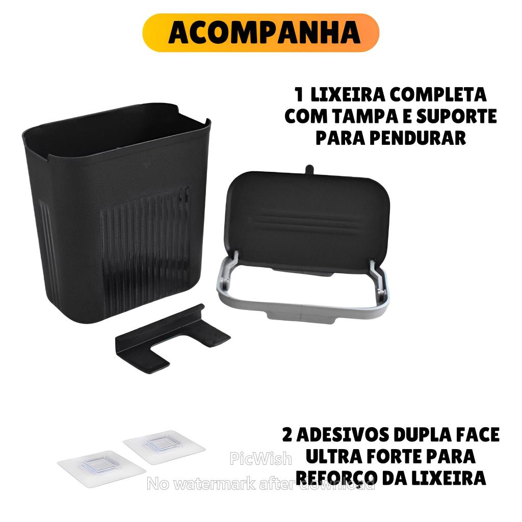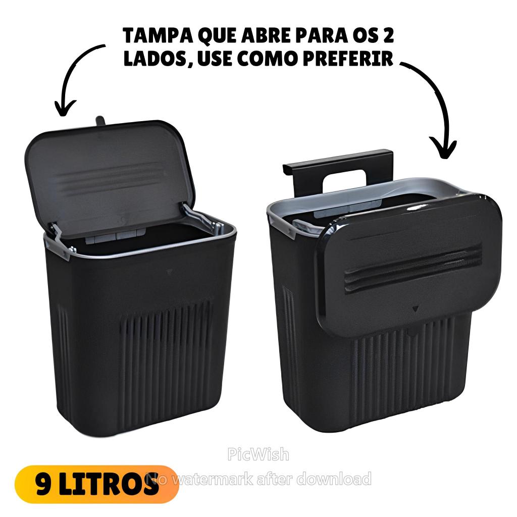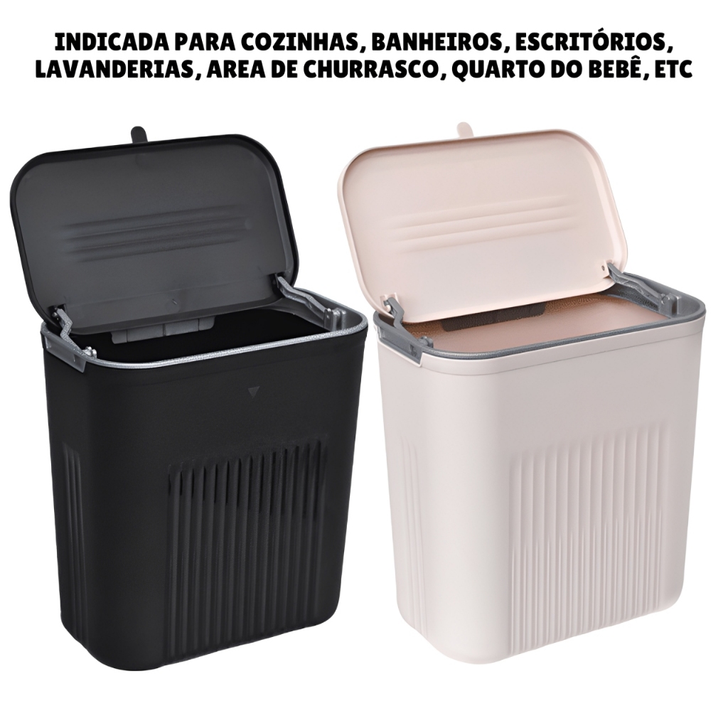 Lixeira Cesto de Lixo 09 Litros Automática Suspensa Rose Preta Banheiro Cozinha Escritório Quarto