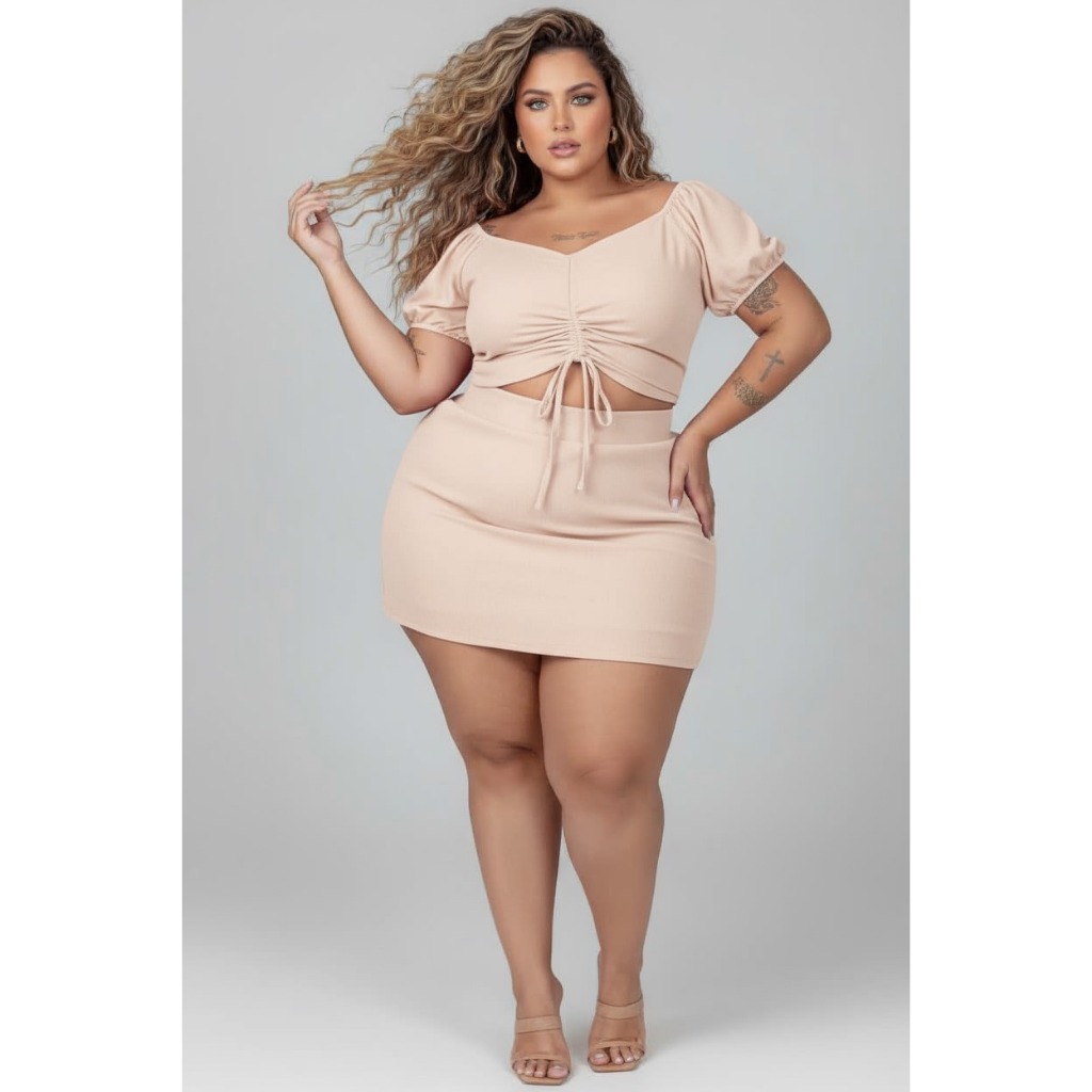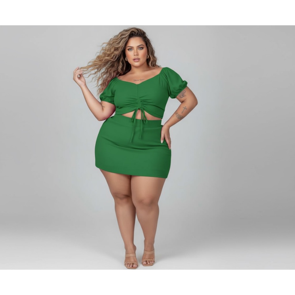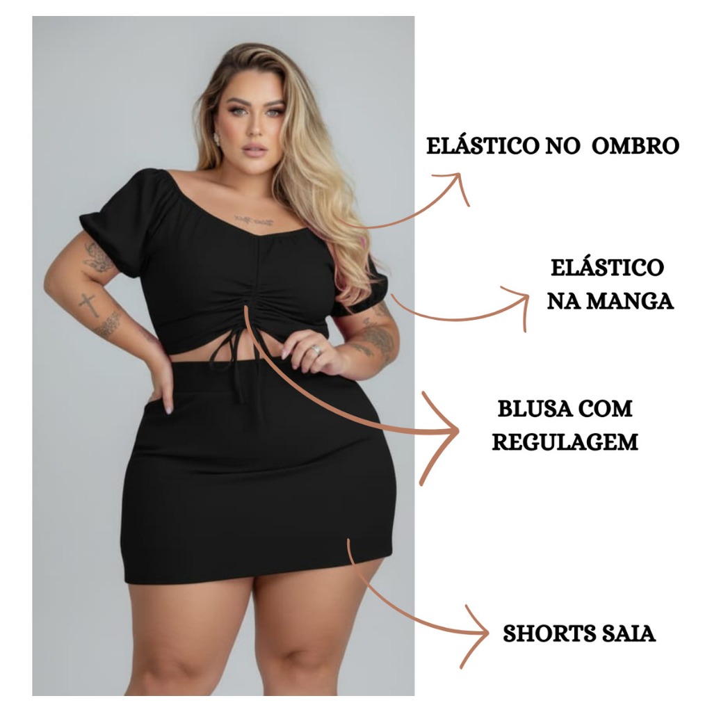 Conjunto Feminino Plus Size Shorts+cropped Gg G1 G2 Festa