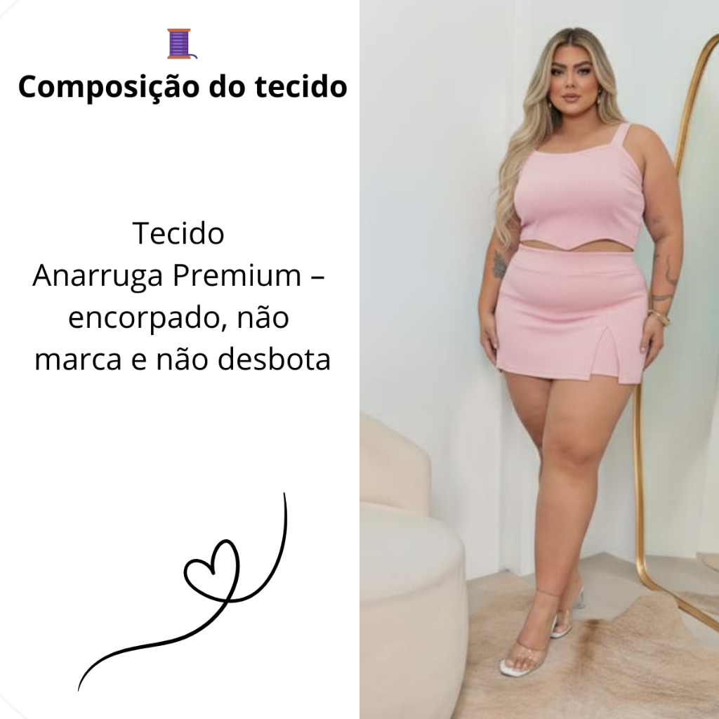 Conjunto Feminino Blusa Cropped + Short Saia Plus Size