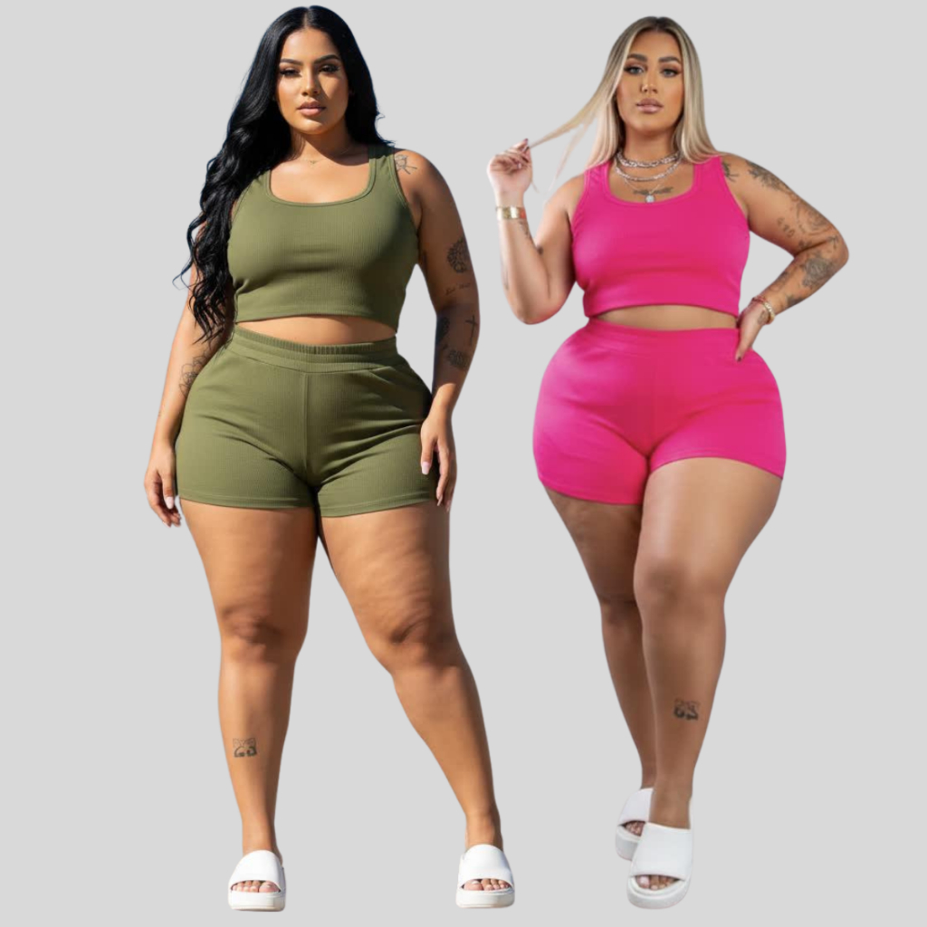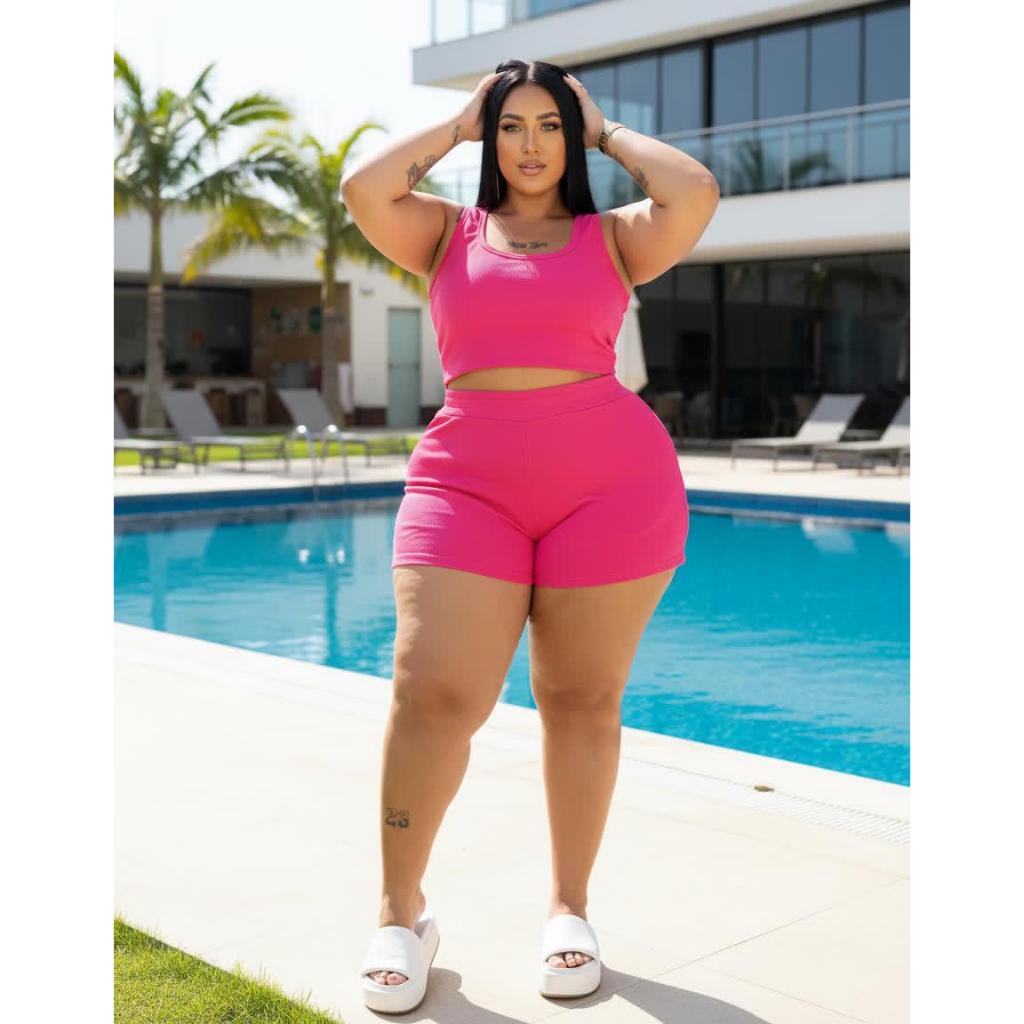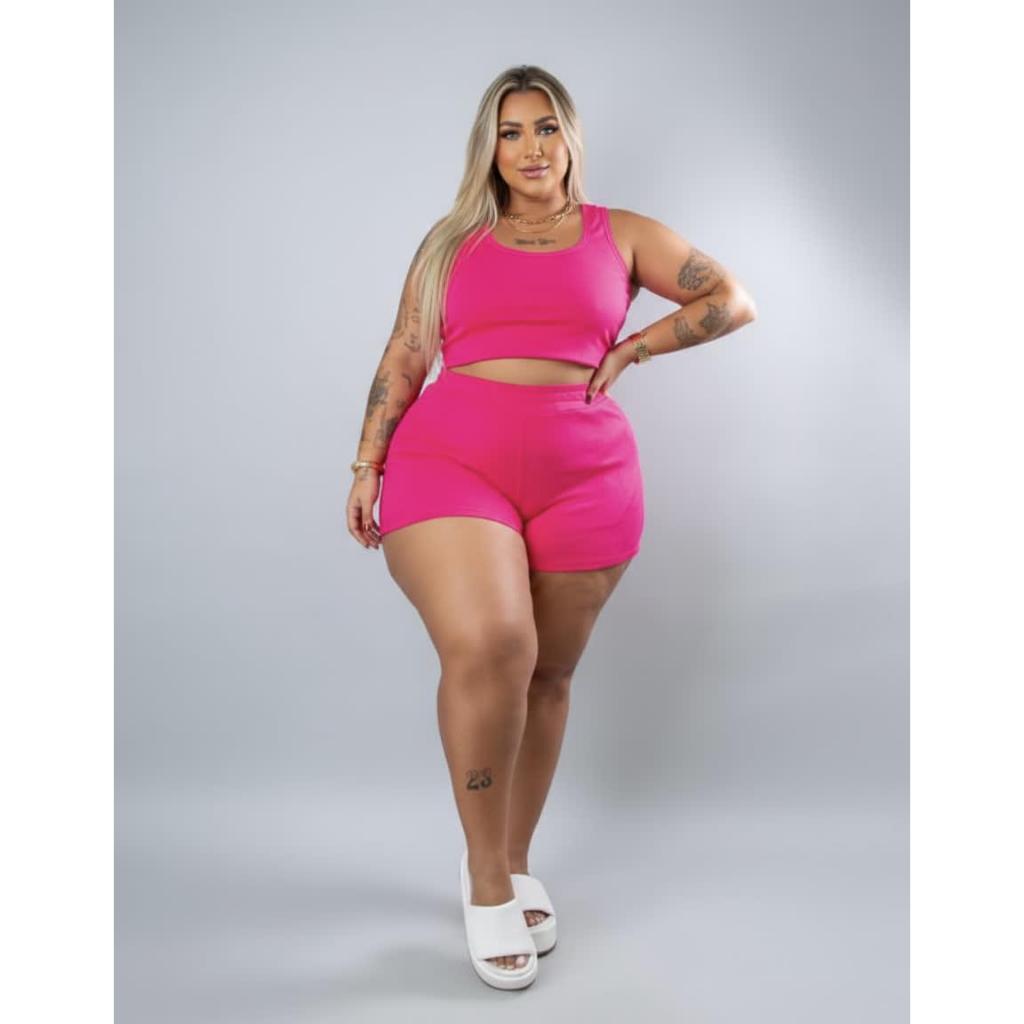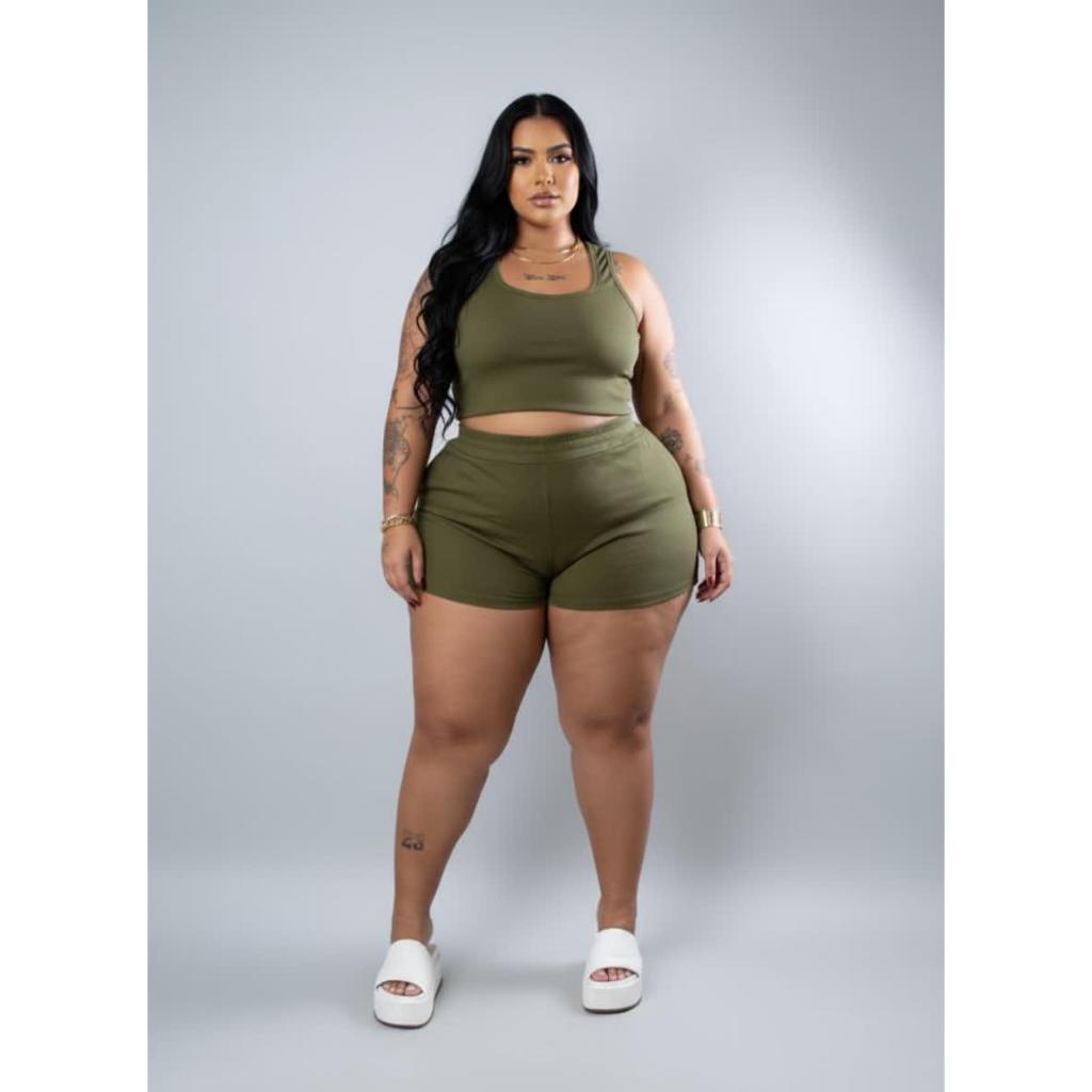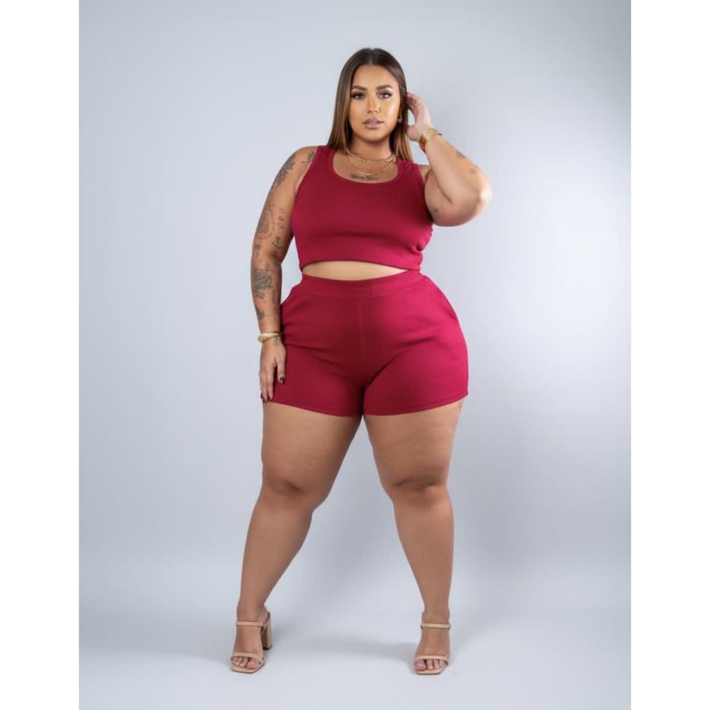 Conjunto Feminino Plus Size Casual Confortável Estiloso Top Short