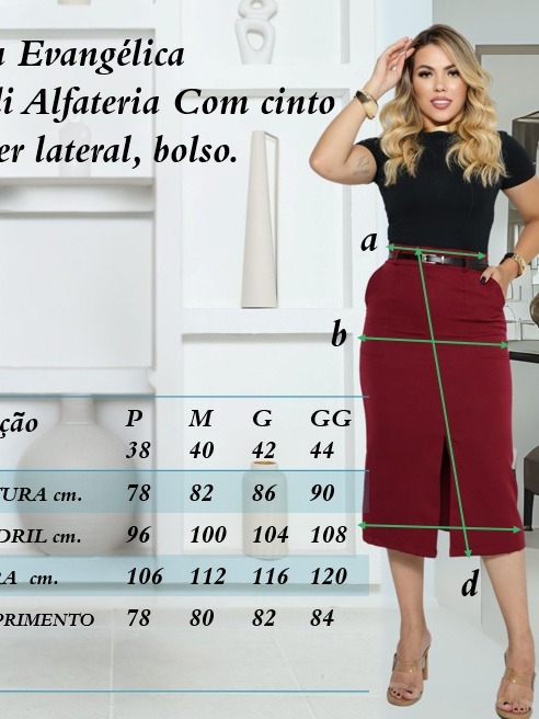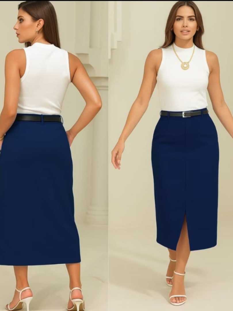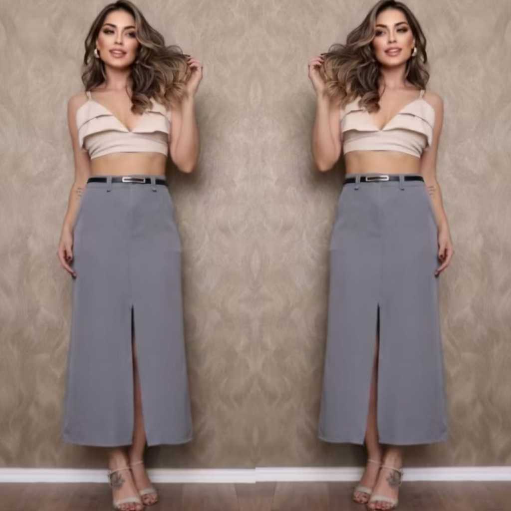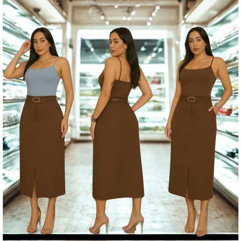 Saia Feminina Longa Evangélica Com Bolsos/Zíper Laterais com cinto Fenda