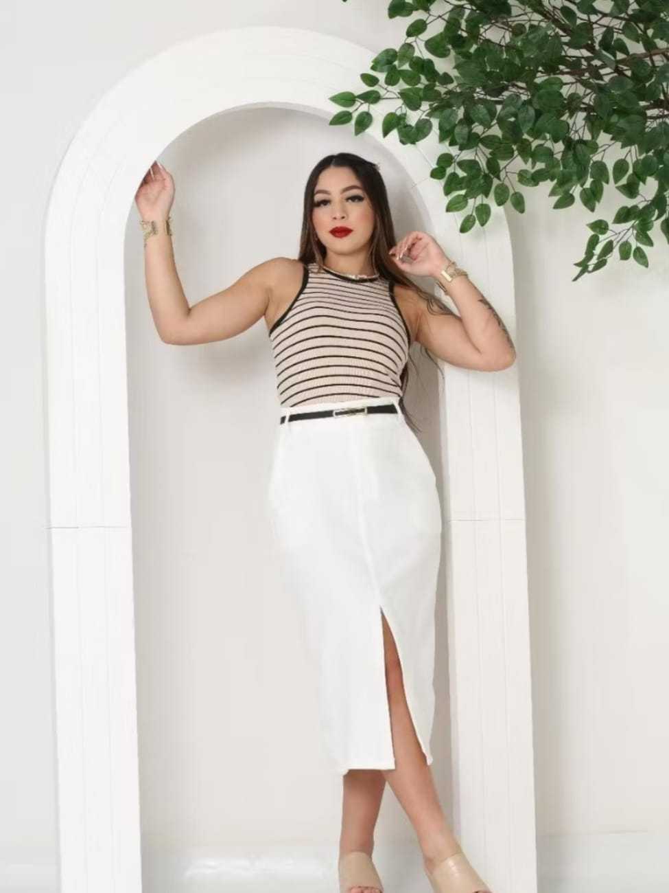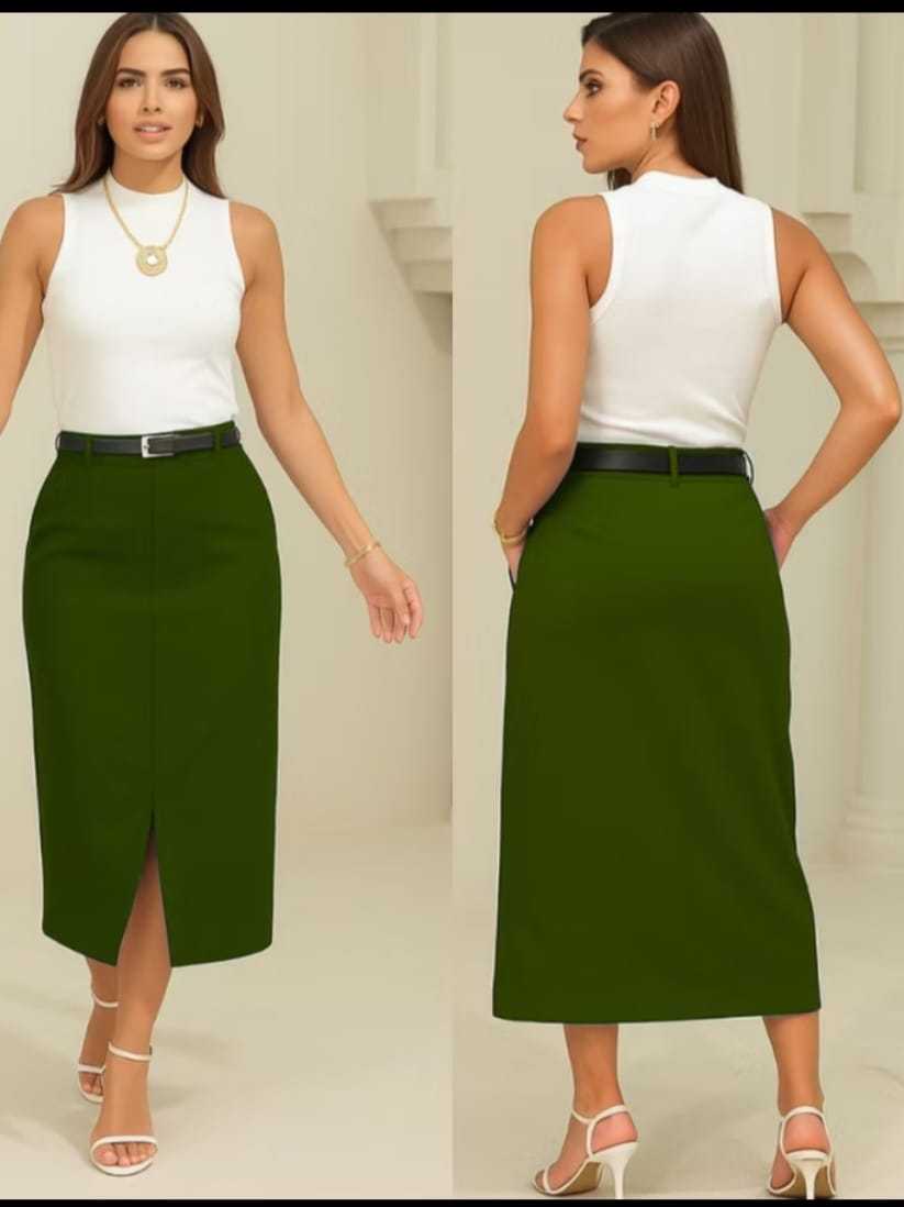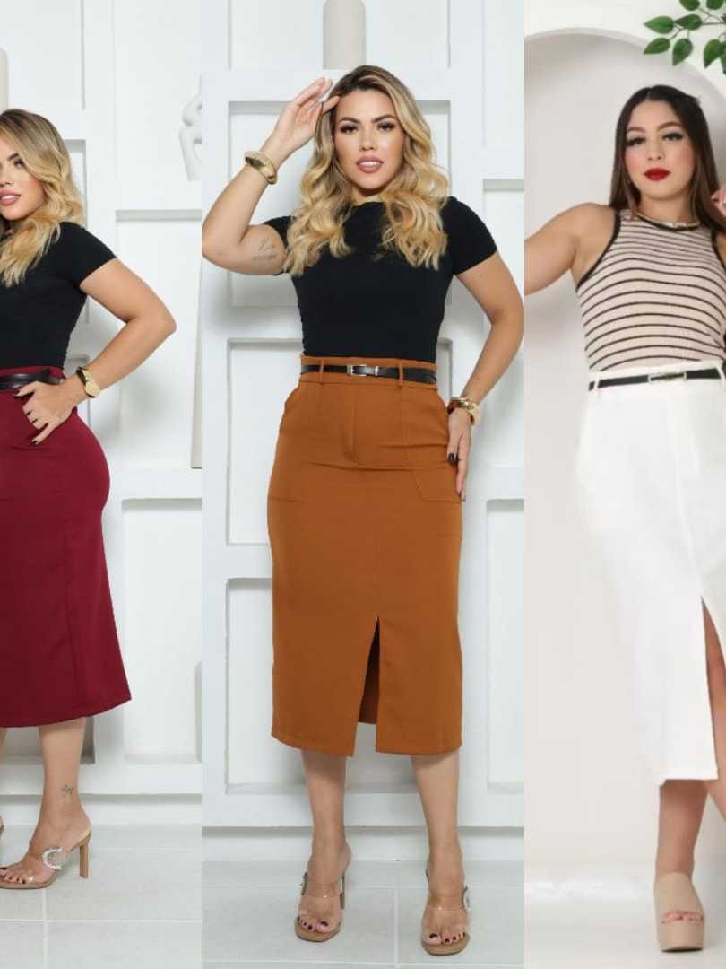 Saia Feminina Longa Evangélica Com Bolsos/Zíper Laterais com cinto Fenda