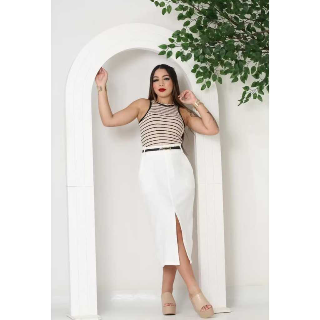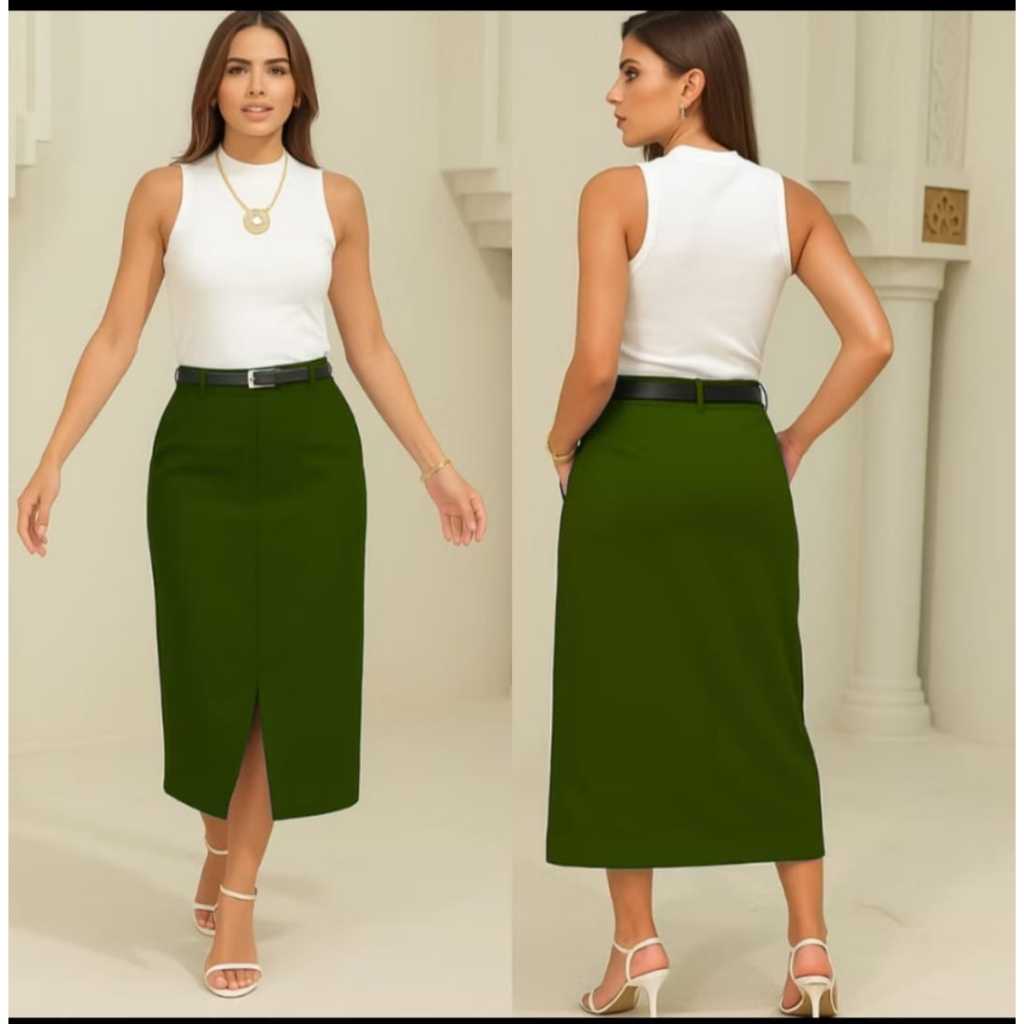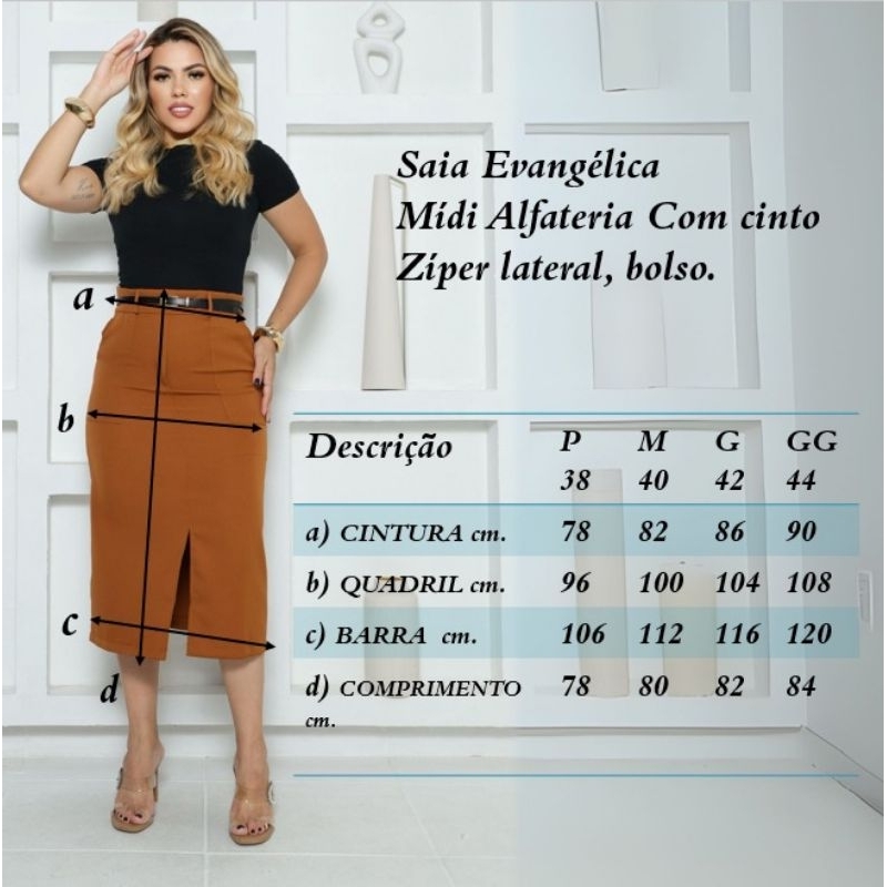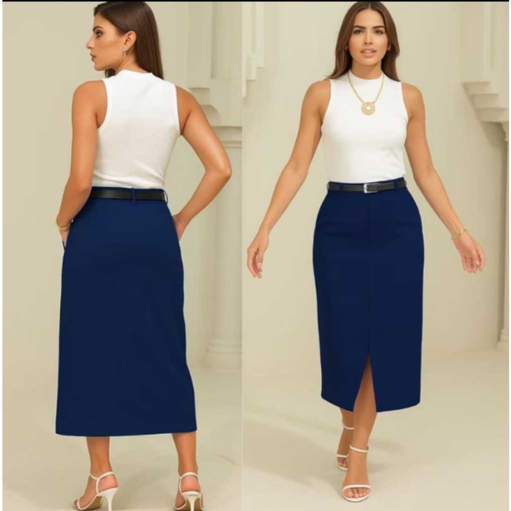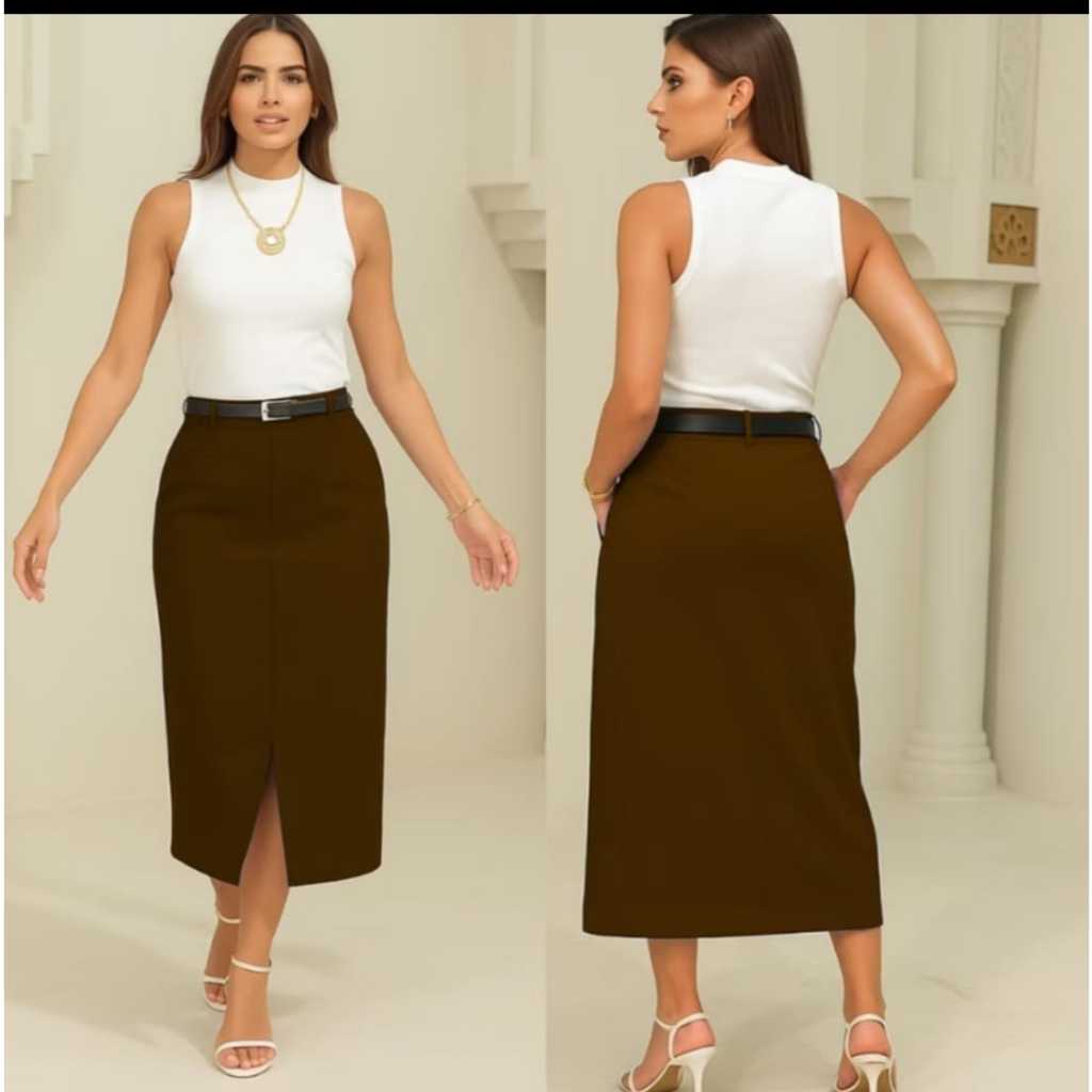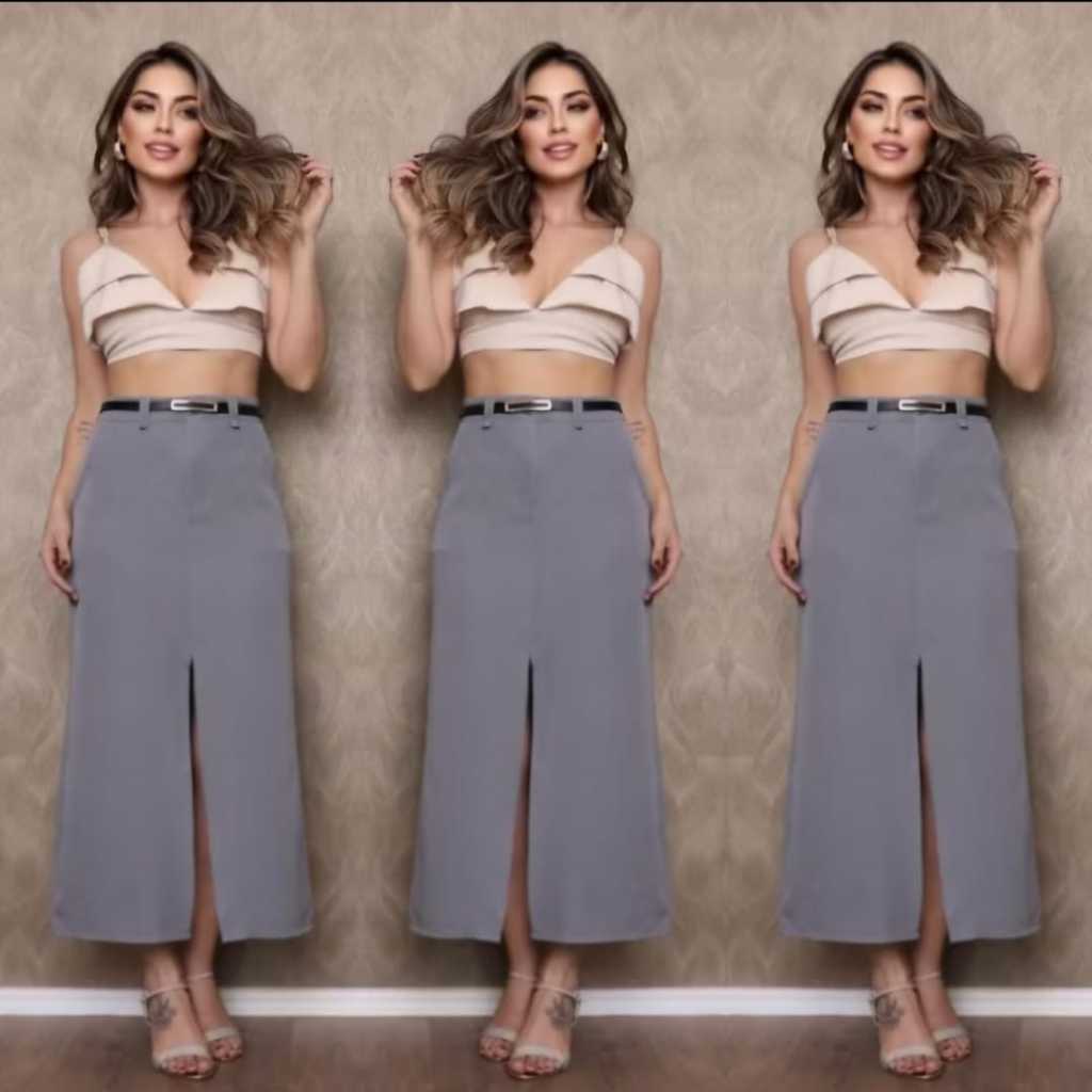 Saia Feminina Longa Evangélica Com Bolsos/Zíper Laterais com cinto Fenda