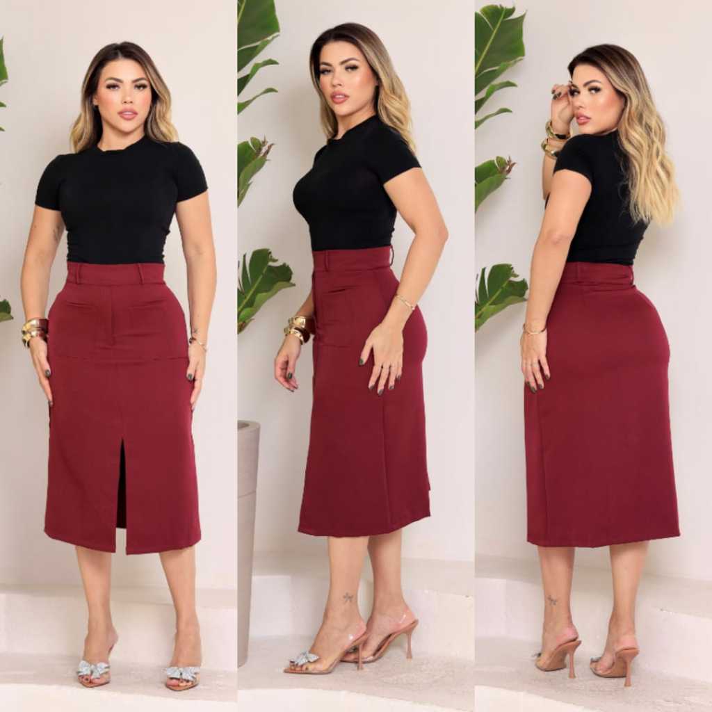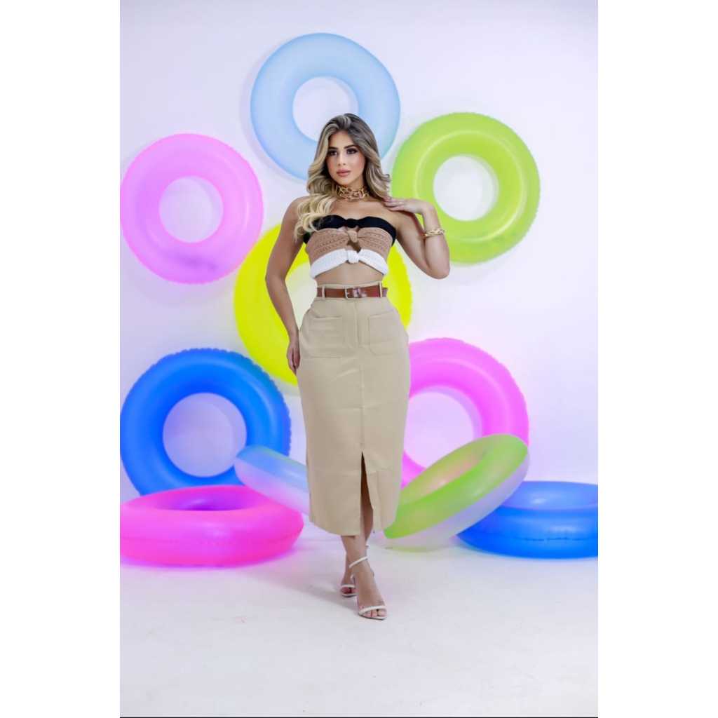 SAIA MIDI EVANGÉLICA BOLSO FRONTAL TECIDO ALFATARIA