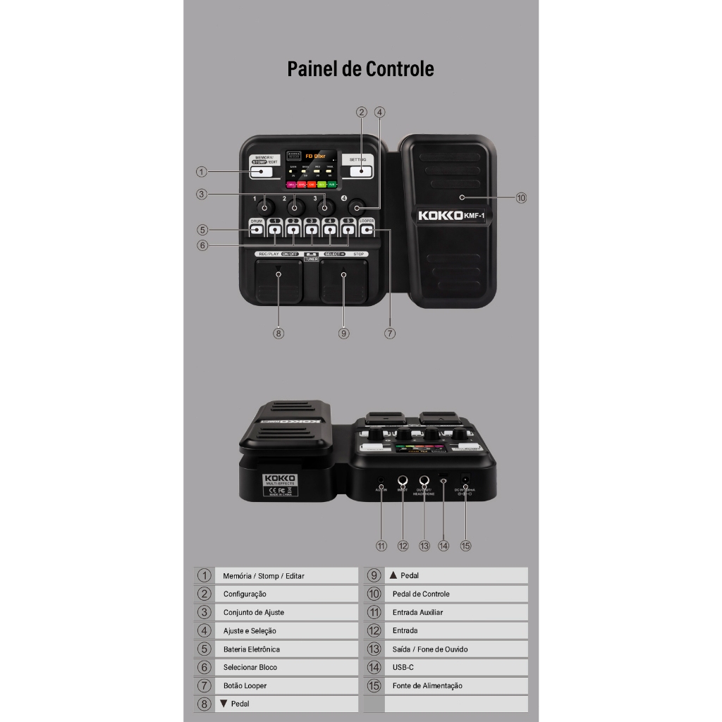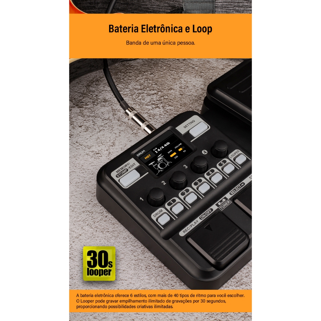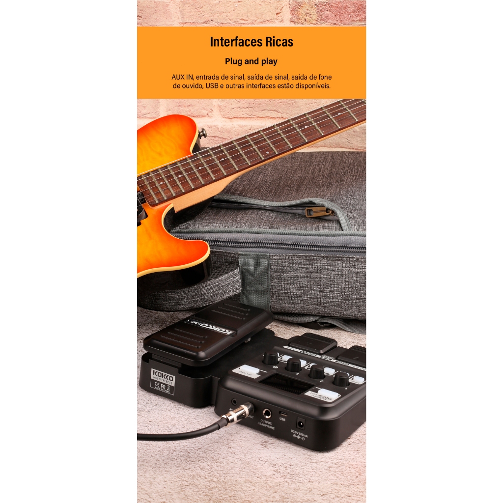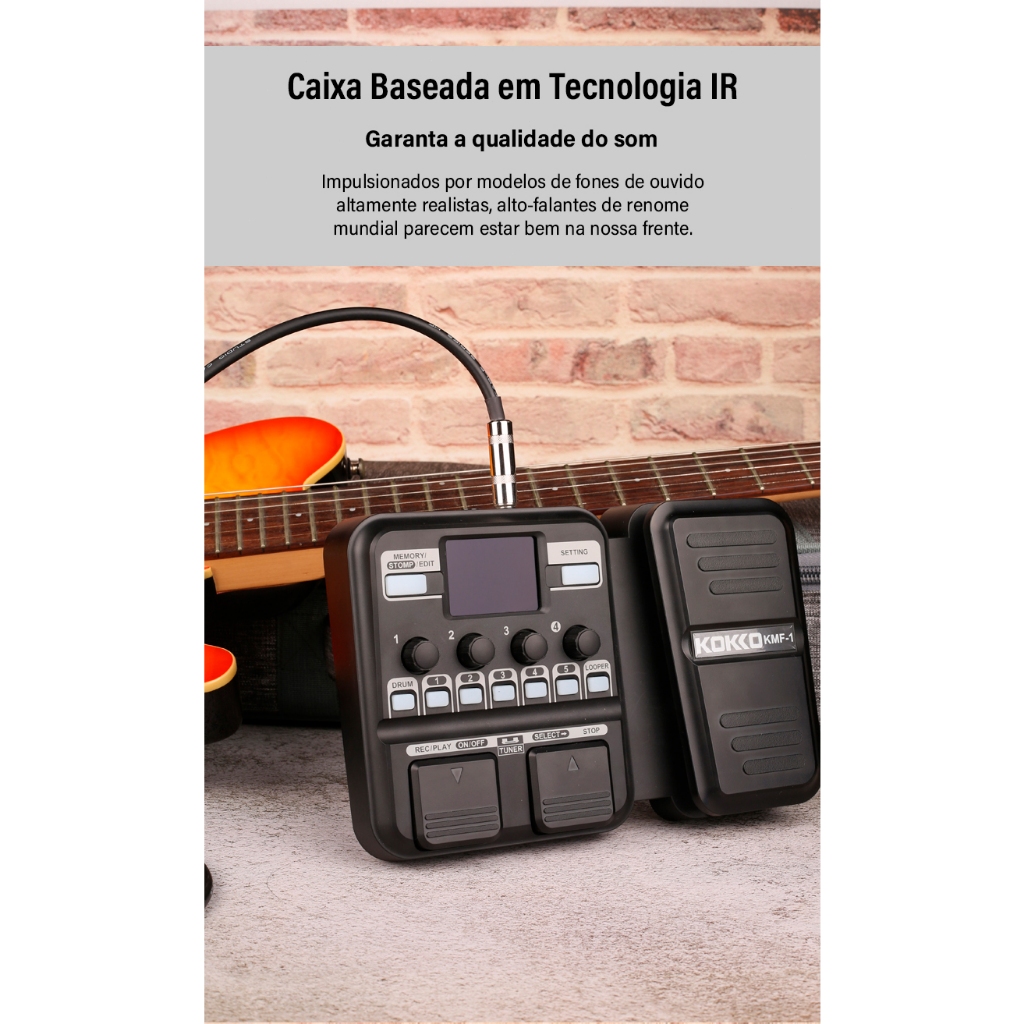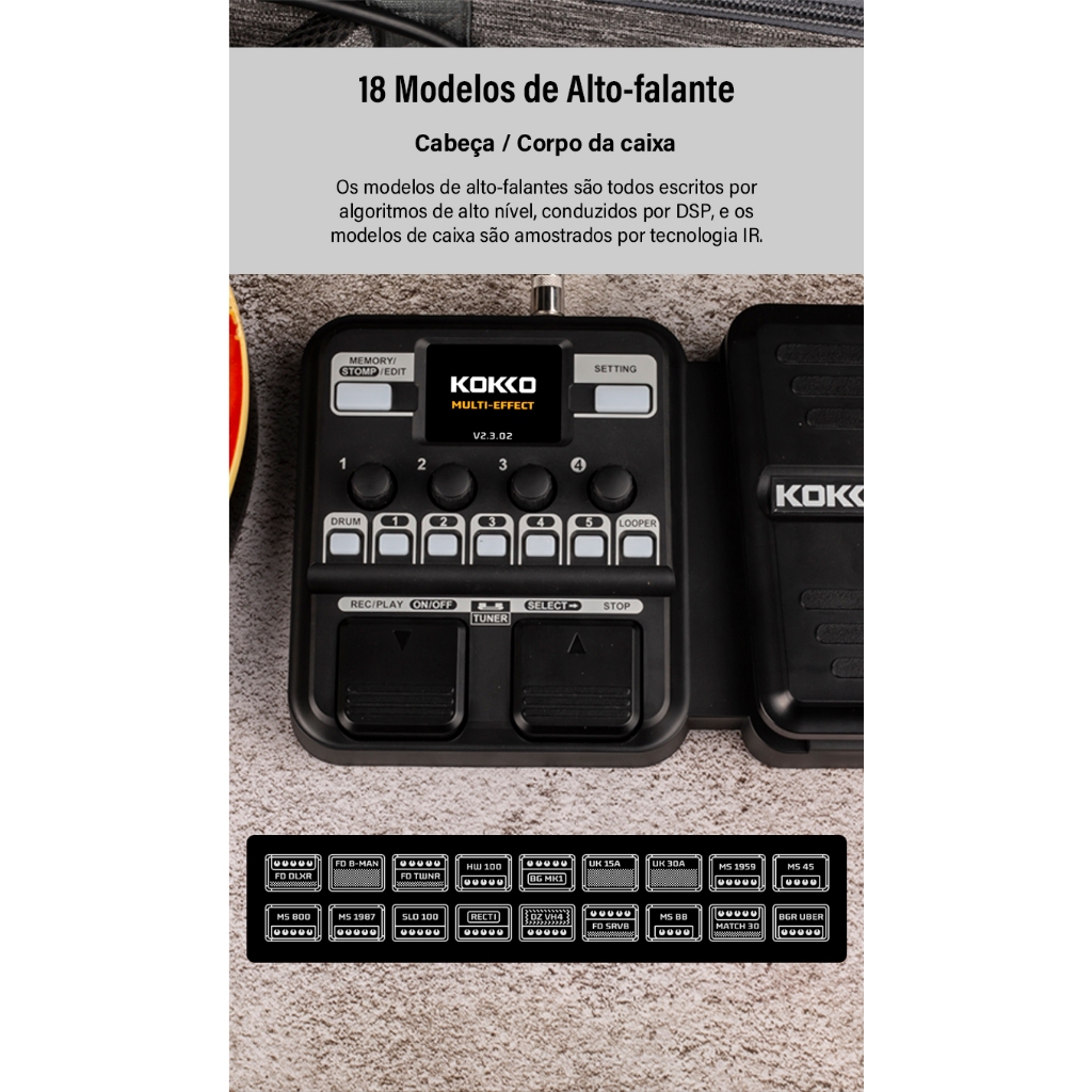 KOKKO KMF-1 Pedal de Guitarra Efeito Sintetizado 18 Modelos de Amplificadores IR 512 Dot Sampling Drum Machine e Função