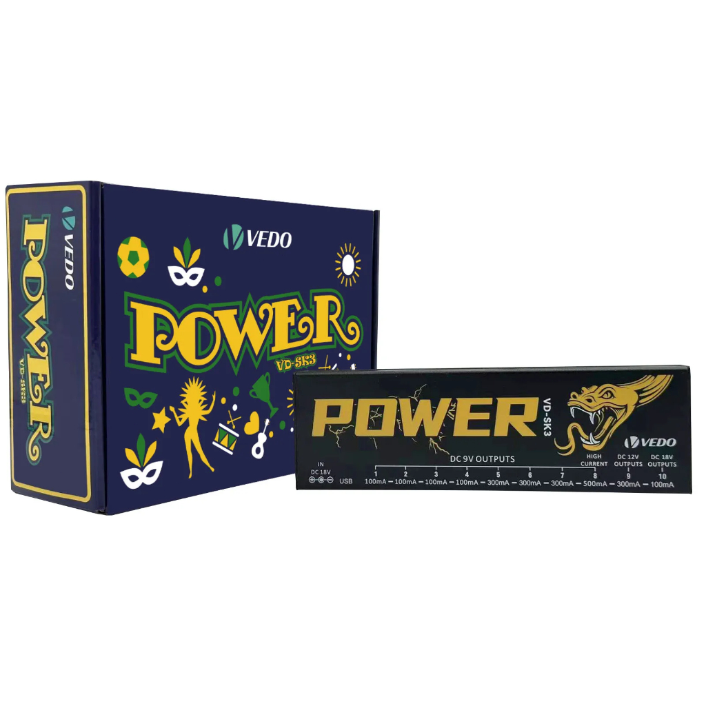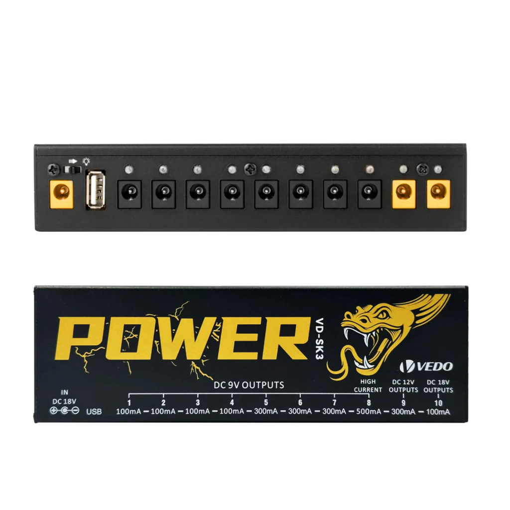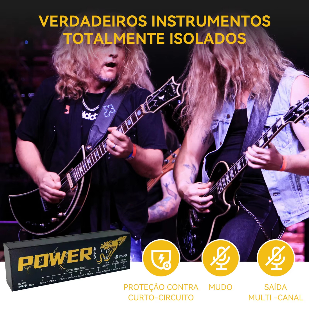 Fonte de alimentação para pedais de efeitos de guitarra 10 saídas isoladas (9V, 12V, 18V) Proteção contra curto-circuito