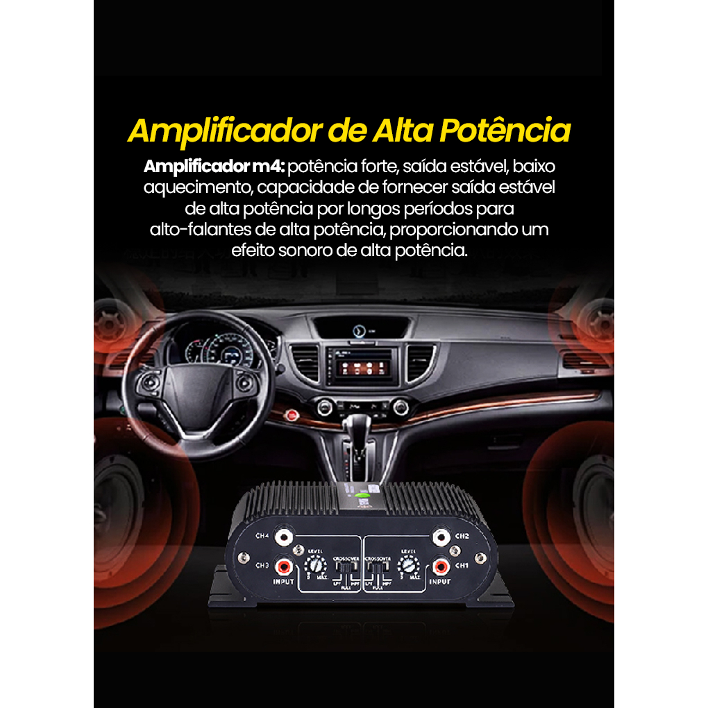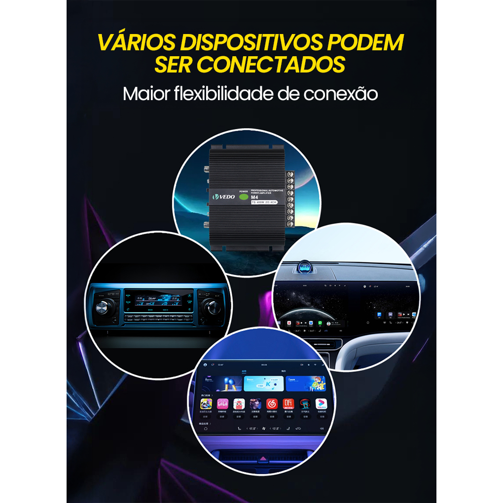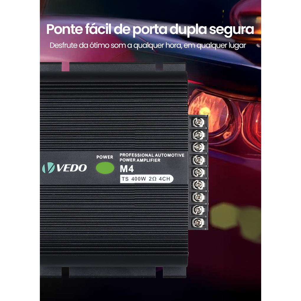 VEDO M4 Amplificador 400w Digital 400rms 4 Canais 2 Ohms Som Estereo Entrada Rca Potencia para Carro Moto Caminhonete