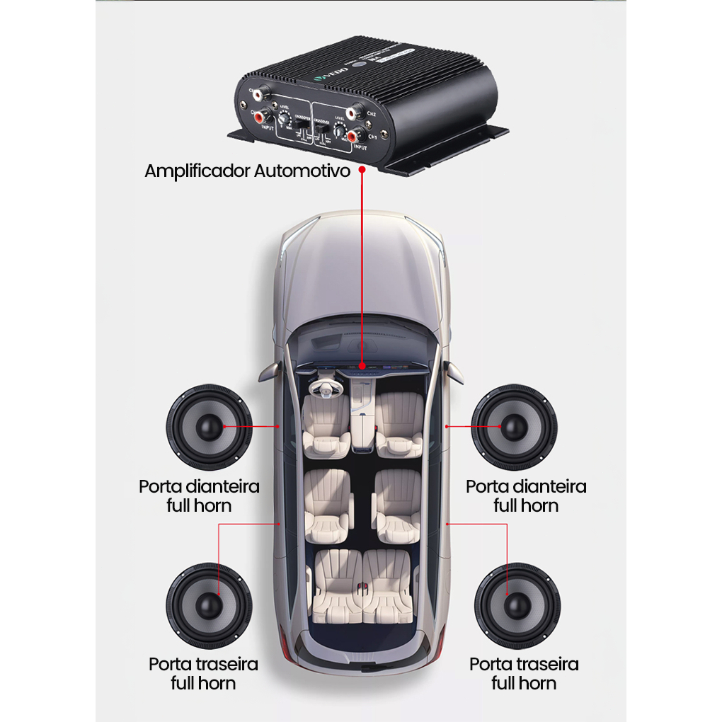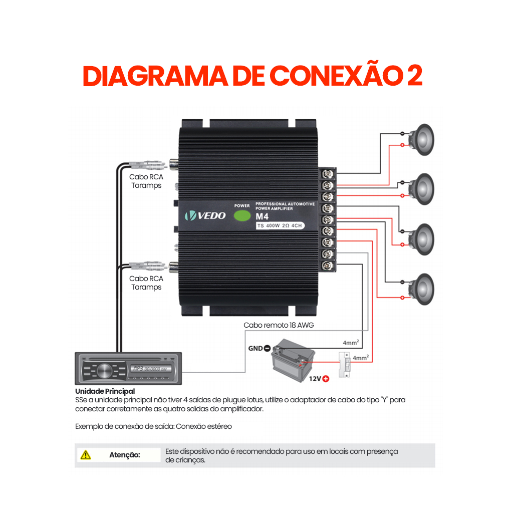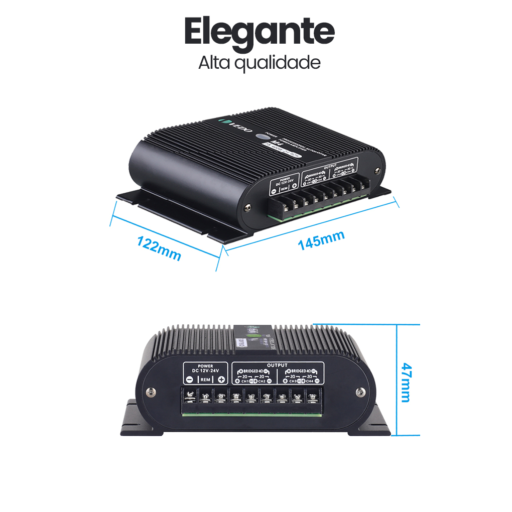 VEDO M4 Amplificador 400w Digital 400rms 4 Canais 2 Ohms Som Estereo Entrada Rca Potencia para Carro Moto Caminhonete