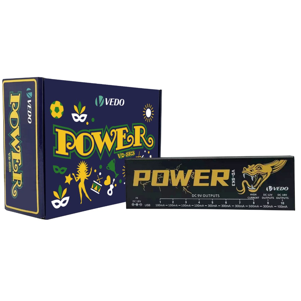 Fonte de Alimentação Pedal Efeito Guitarra 10 Saídas Isoladas (9V, 12V, 18V) Proteção de Curto Circuito/Sobrecorrente