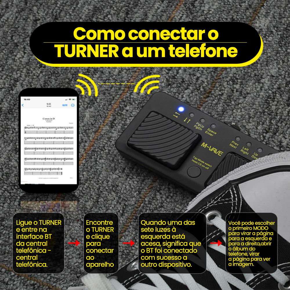 M-VAVE Cube Turner Pro Página Sem Fio Turner Pedal Mute Turner Silent Foot Pedal USB BT Recarregável Para IPhone Android