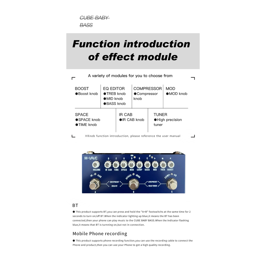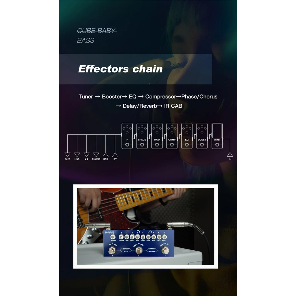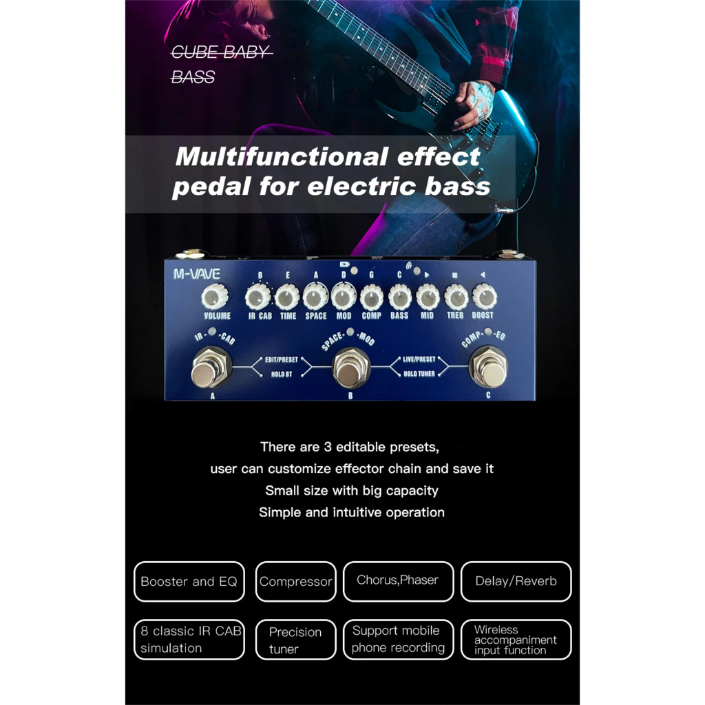 M-vave Cube BEBÉ Recarregável Multi Efeitos Pedal Para Baixo Elétrico Gravação Interface de Áudio Função Cuvave Pedal