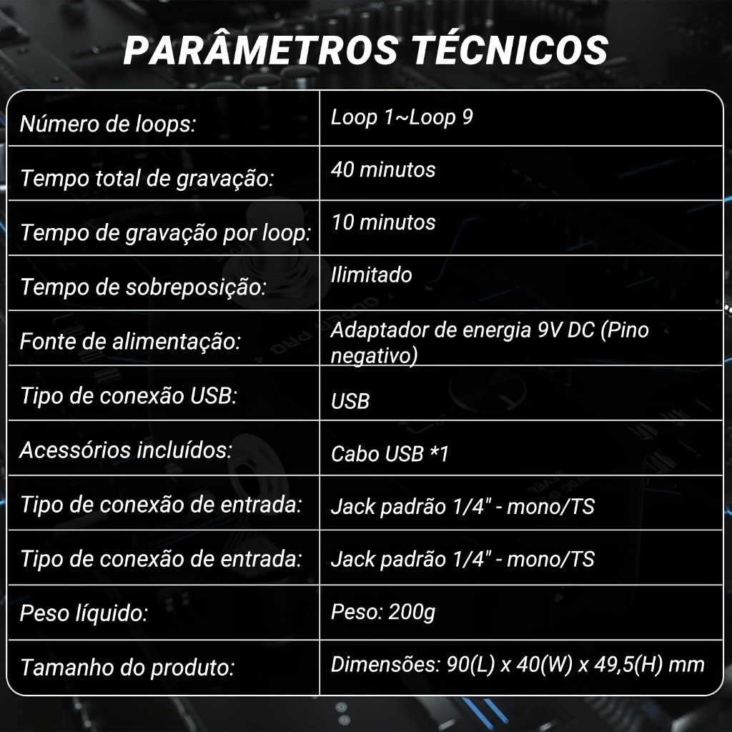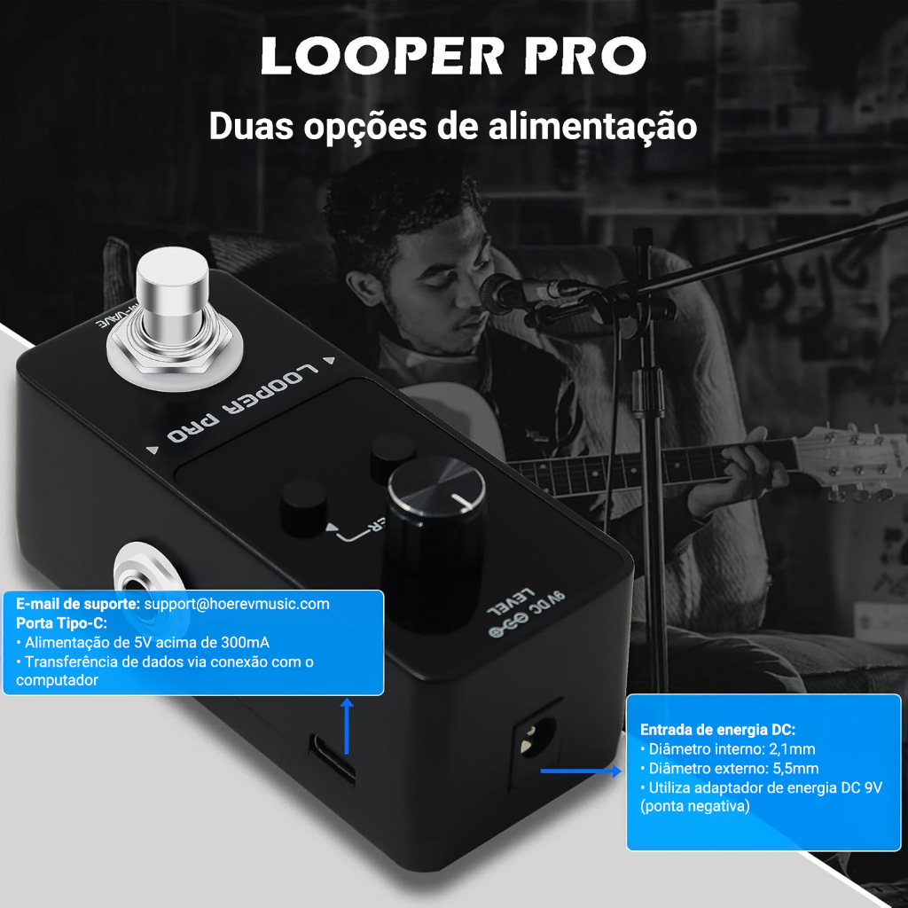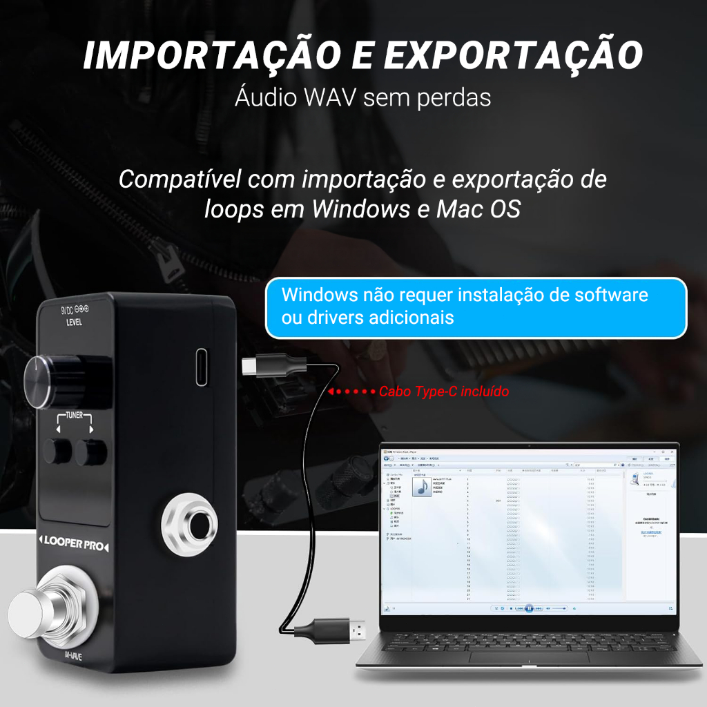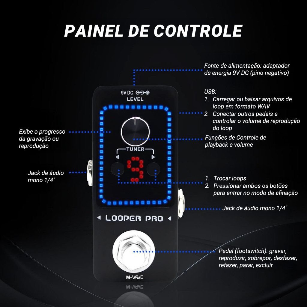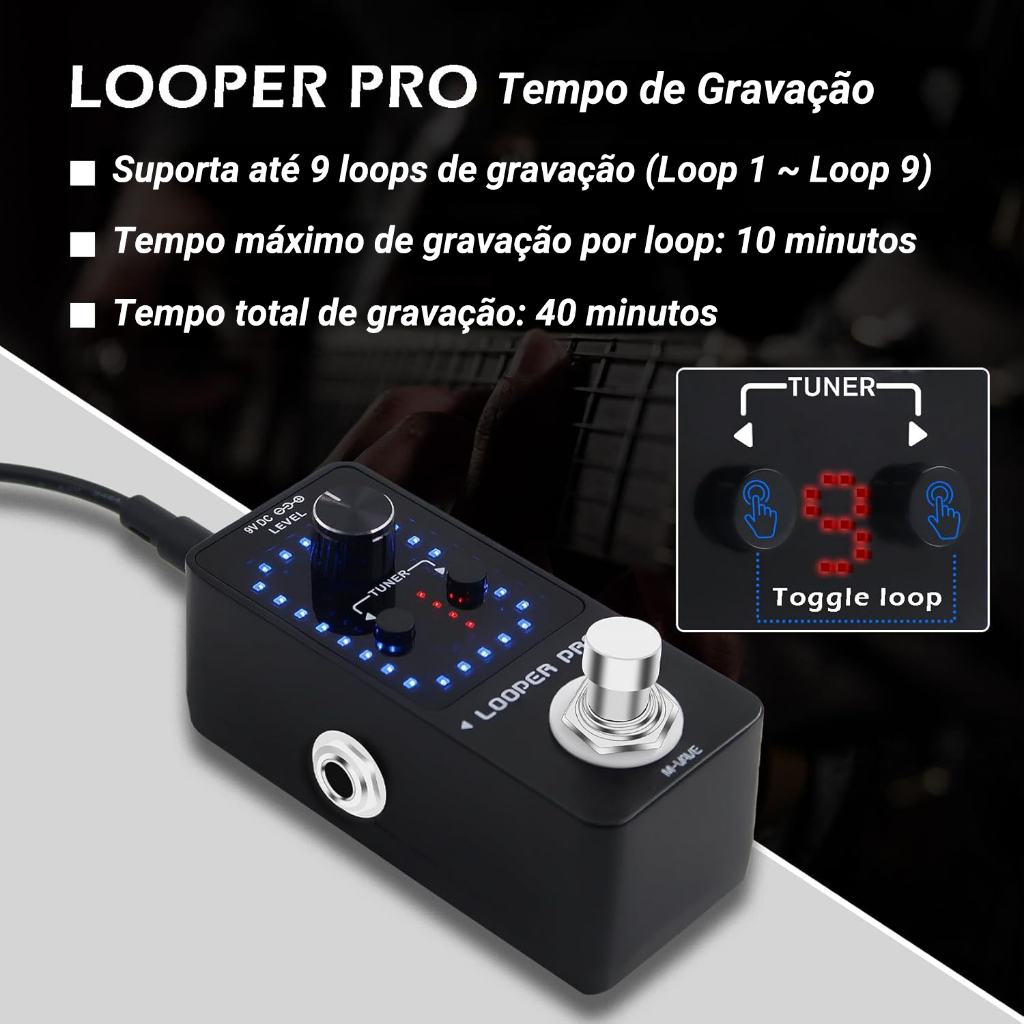 M-VAVE Looper Pro Pedal de guitarra Guitarra Loop Pedal de efeito para guitarra elétrica Overdubs ilimitados Peças