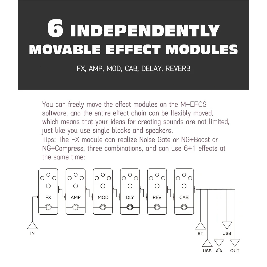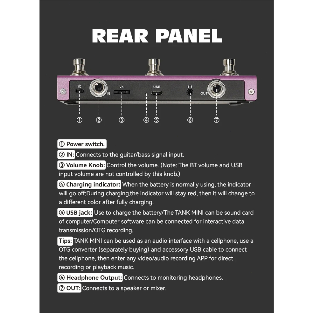 Pedal multiefeitos para guitarra elétrica e baixo M-VAVE TANK MINI Suporta predefinições de tom Funcionalidades de