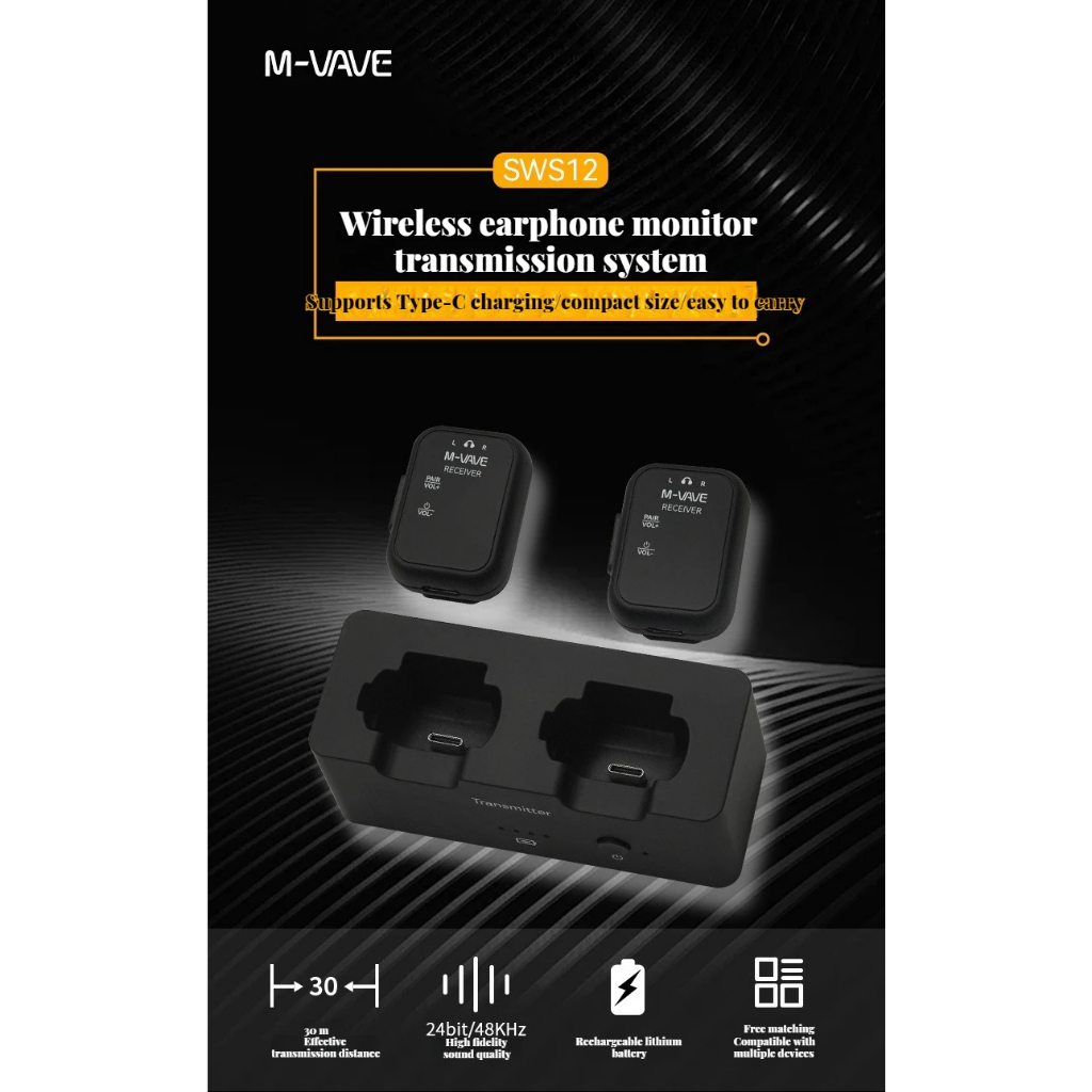 M-VAVE WP-12 Monitor de auscultadores sem fios 2.4G 1 Transmissor 2 Recetor Sistema de áudio Transmissão Gravador Mono