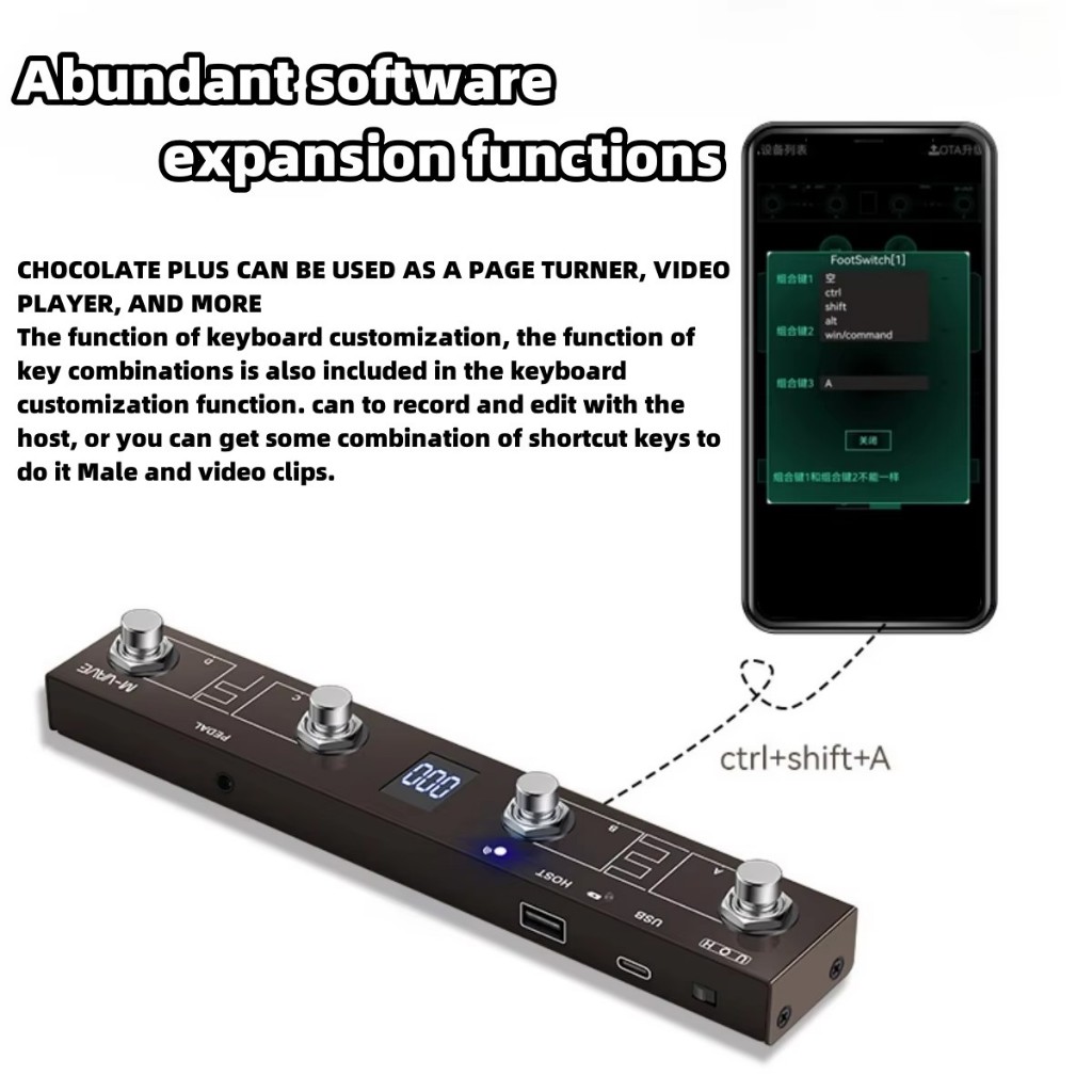 M-VAVE Chocolate Plus Foot Switch sem fio de 4 botões compatível com a função de controle da interface de host MIDI