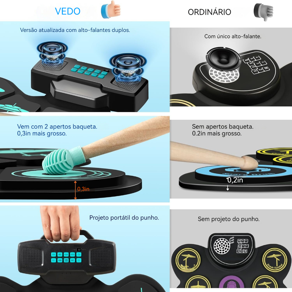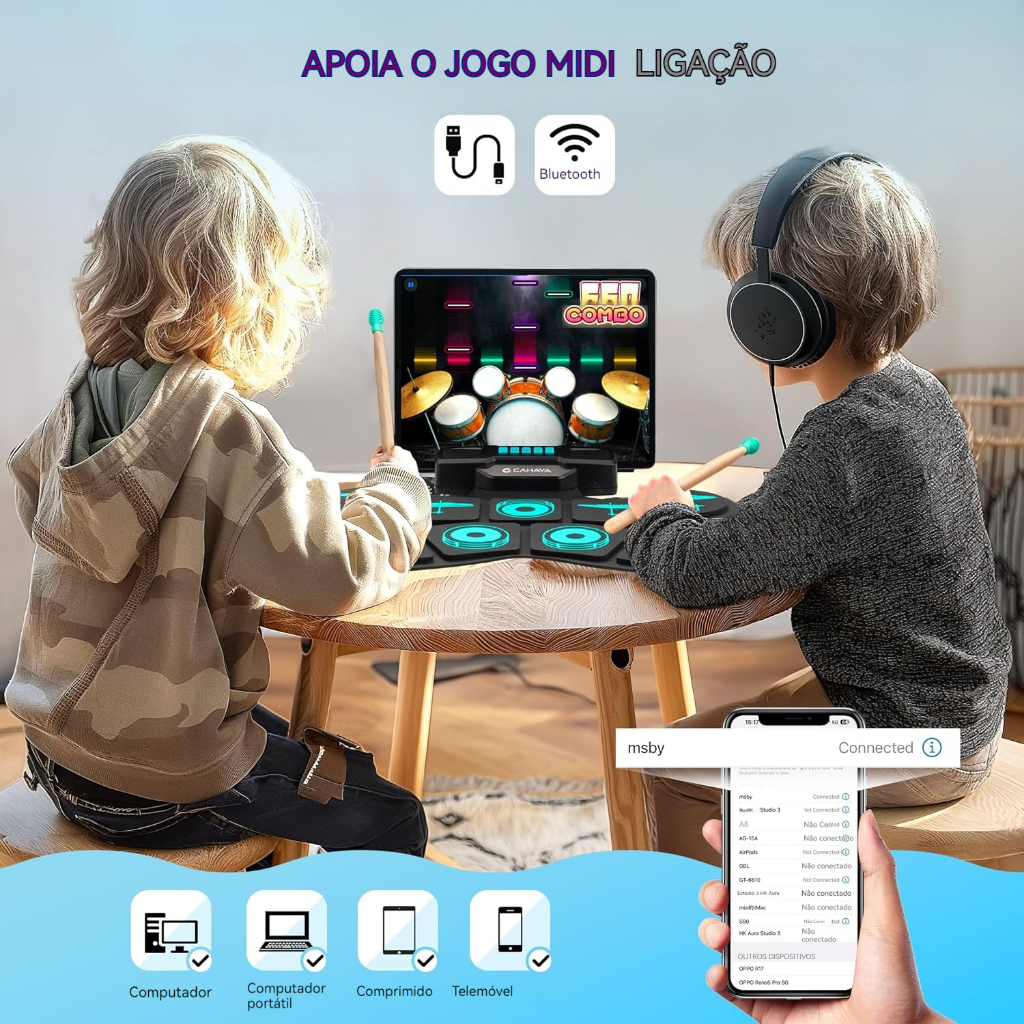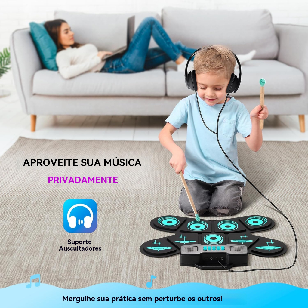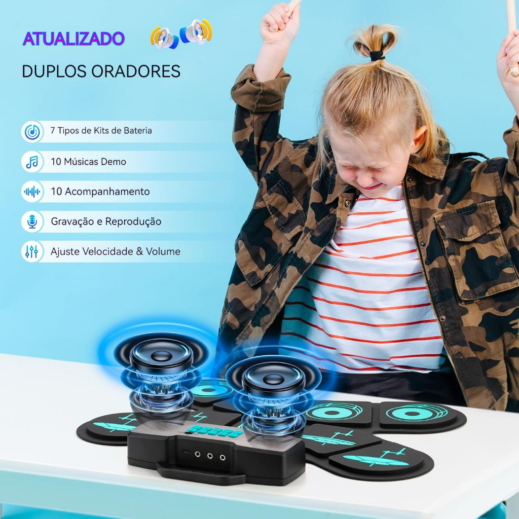 Conjunto de tapete para bateria eletrônica: Dual Speaker Portable 9-Pad Electric Practice Drum MIDI Game Music Beginner