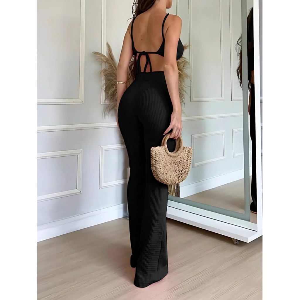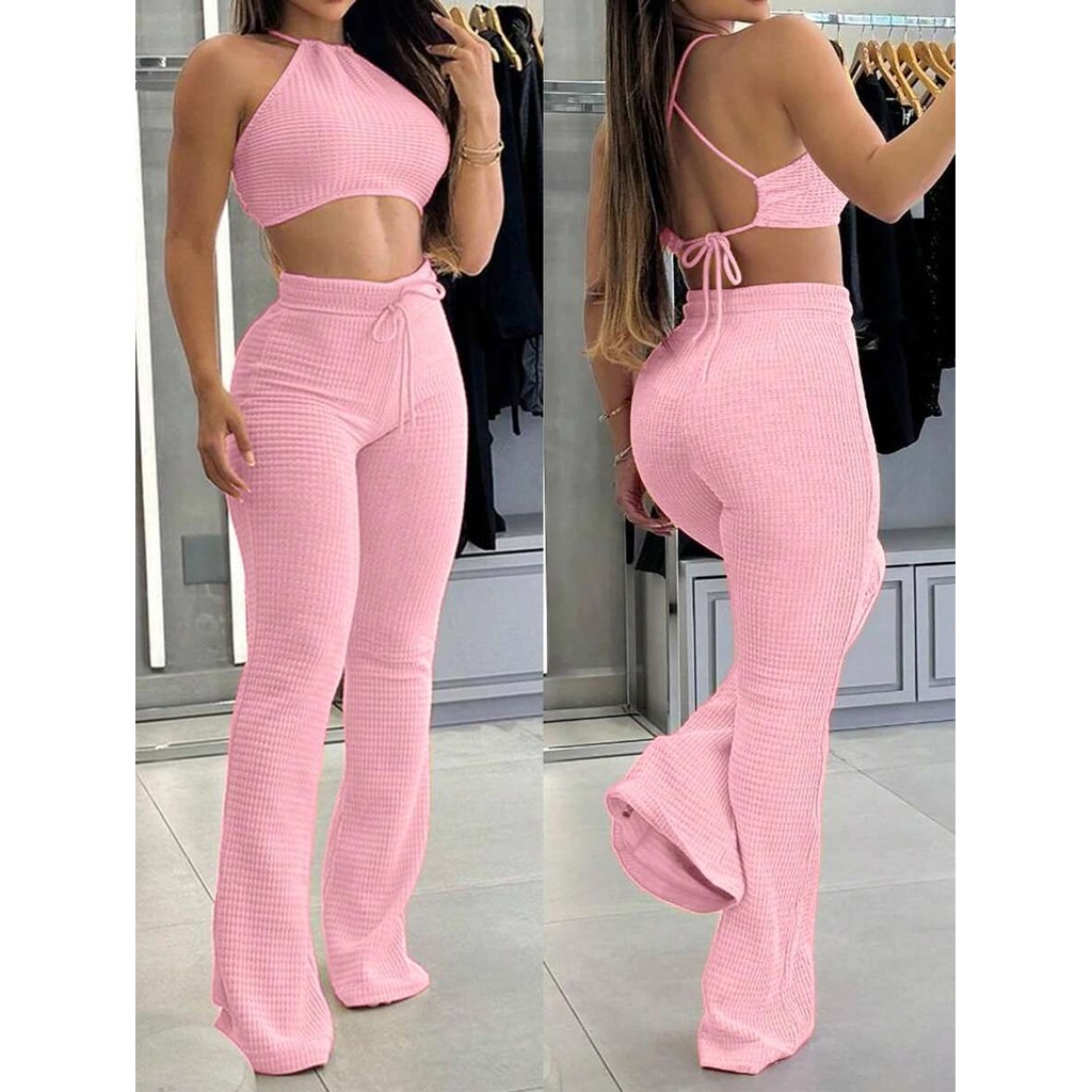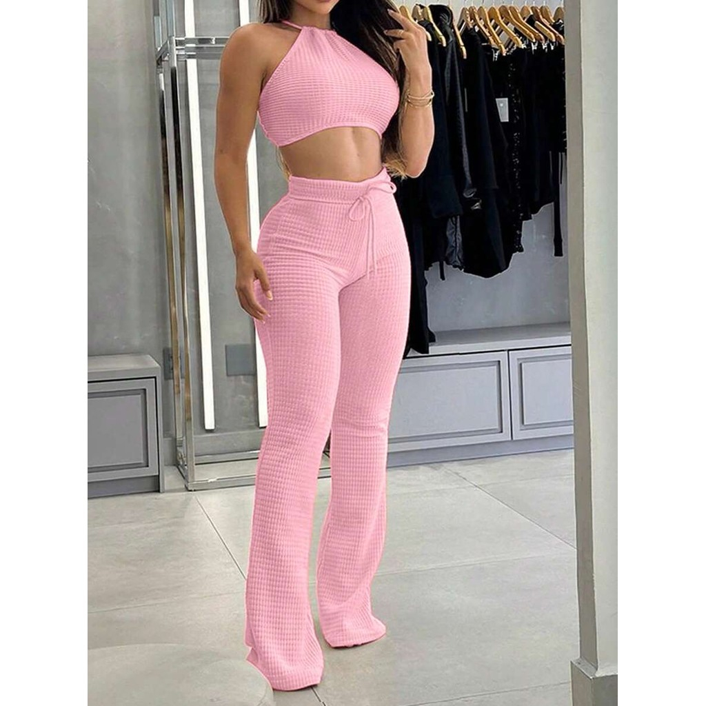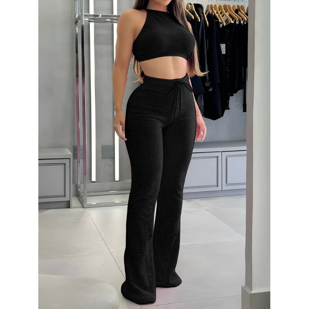 Conjunto Feminino Calça Flare e Top Forrado Frente Unica com Bojo Malibu