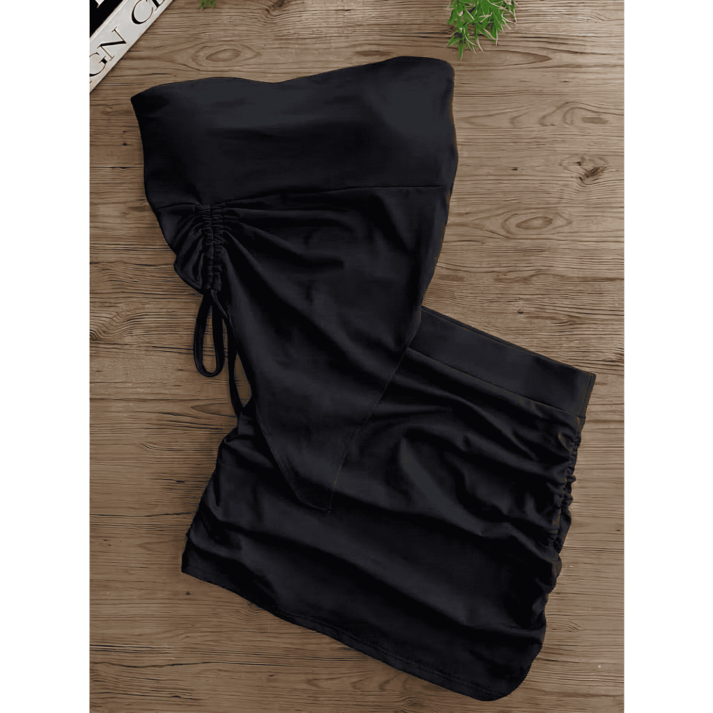 Conjunto Feminino Estampado Cropped Assimétrico com Bojo + Mini Saia Franzida Moda Verão Tendência