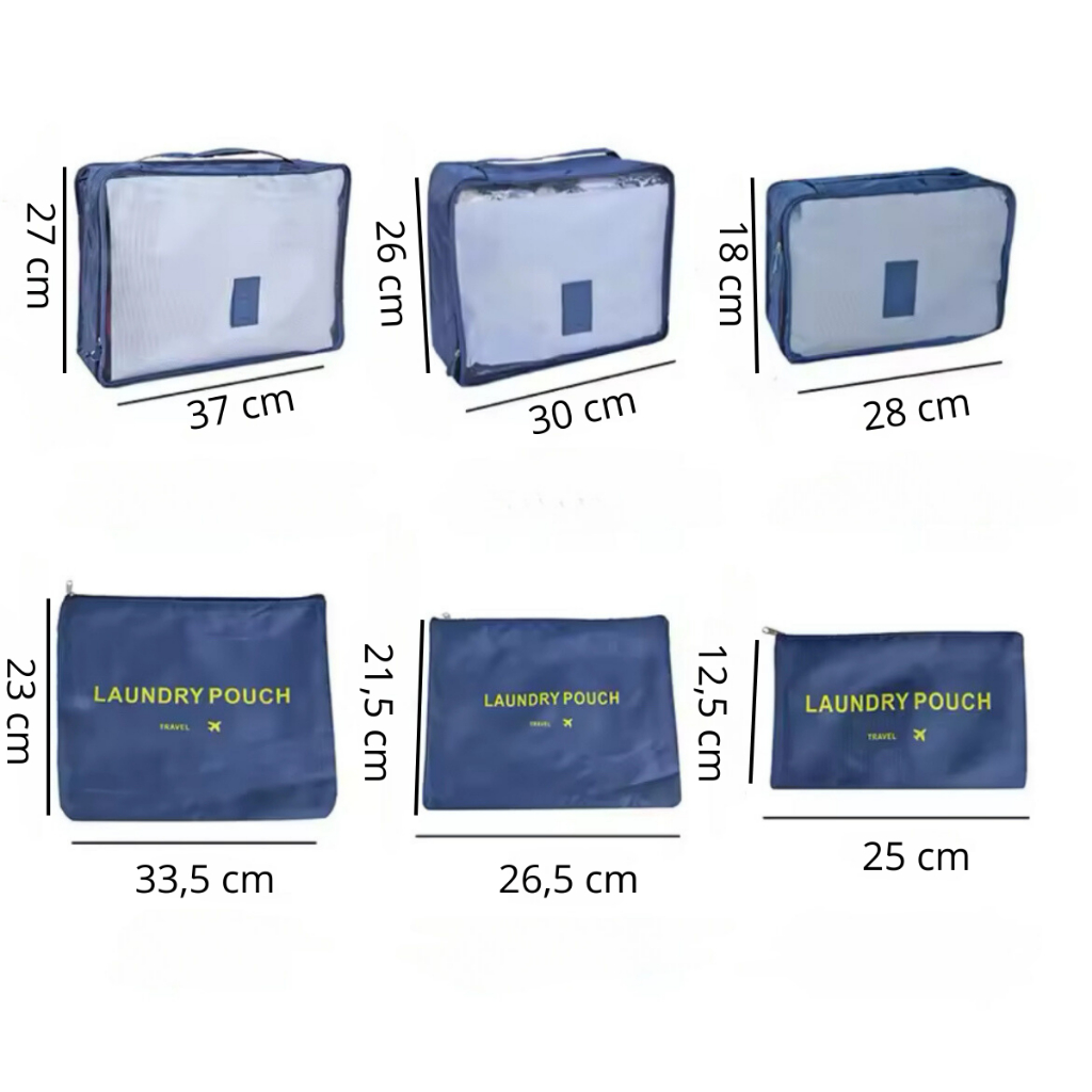 Kit 06 ou 12 peças Organizador Mala de Viagem Acessórios Unissex Necessaire Maquiagem Bagagem Bolsa
