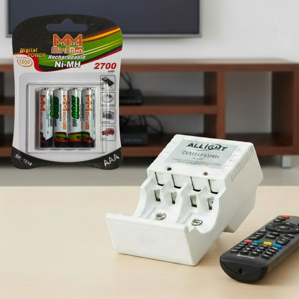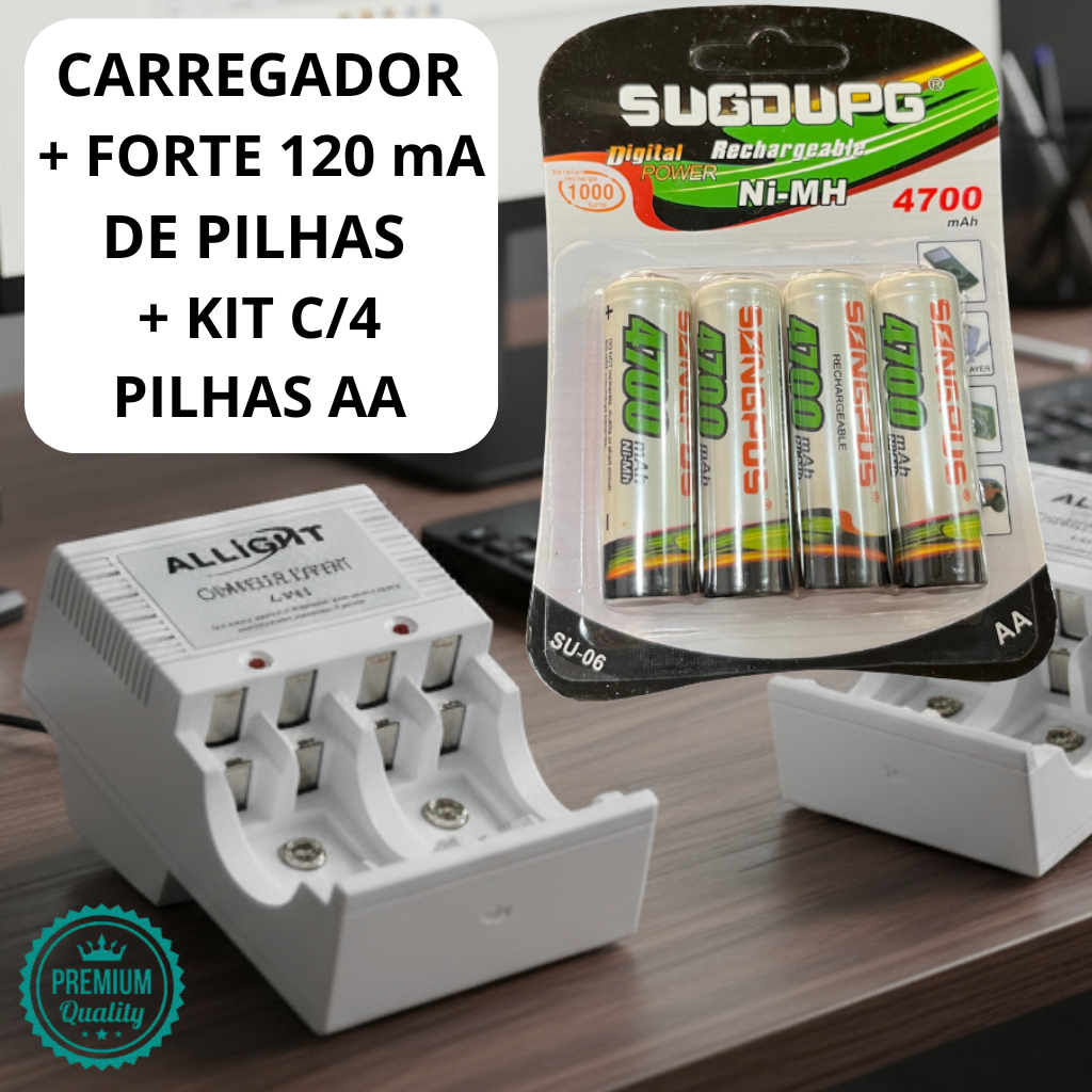 Kit Carregador De Pilhas AA/AAA/Bateria 9v Recarregáveis