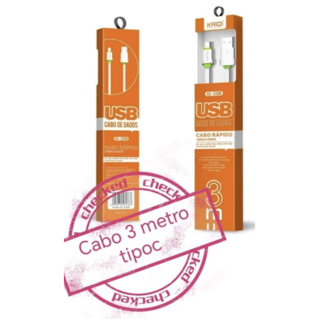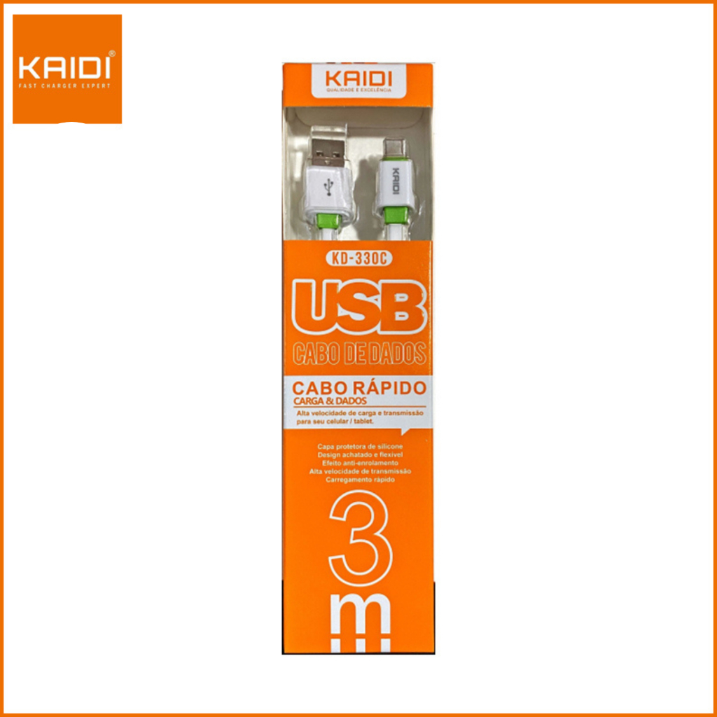 Cabo Carregador e Dados Celular Cabo Rápido 3m metros Kaidi KD-330 V8/IPHONE/TIPO-C