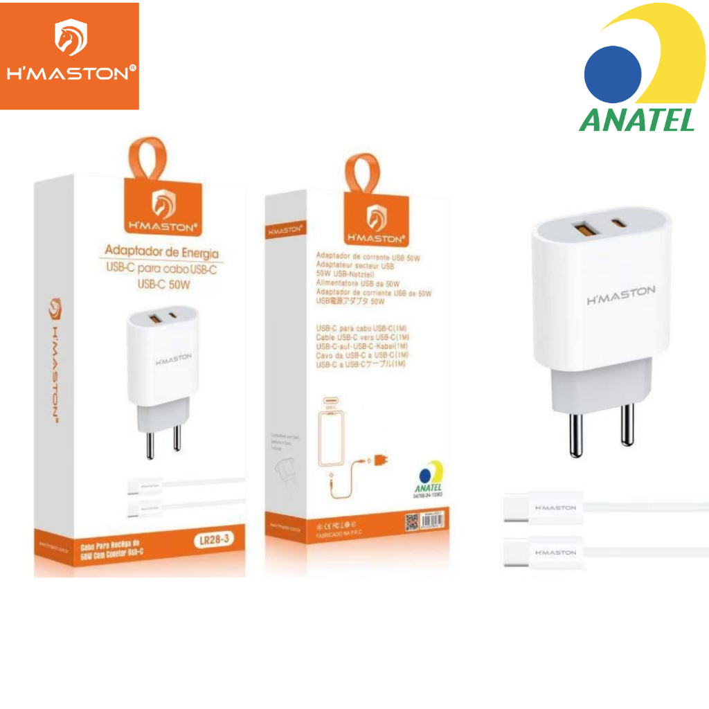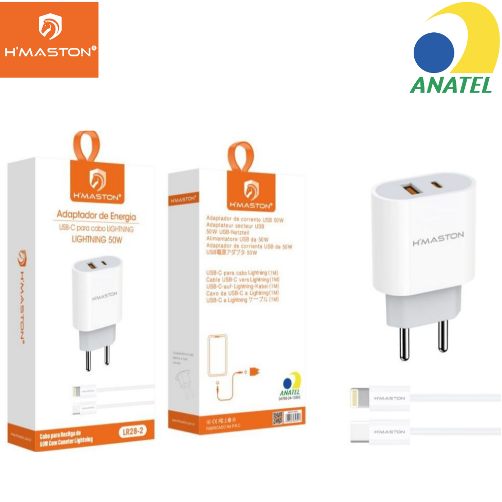 Carregador Fonte e cabo Carga Rápida 50w Original H"Maston USB + USB-C | iPhone LR28-2/LR28-3