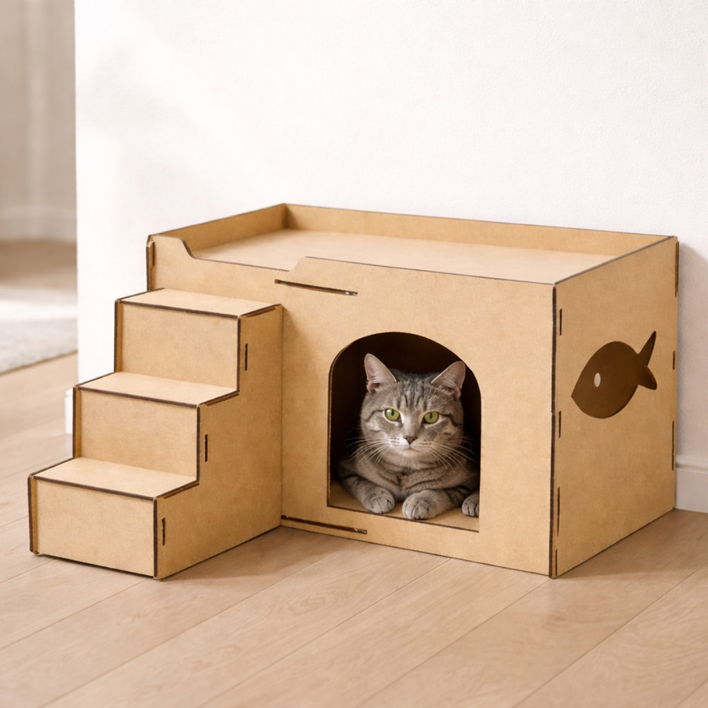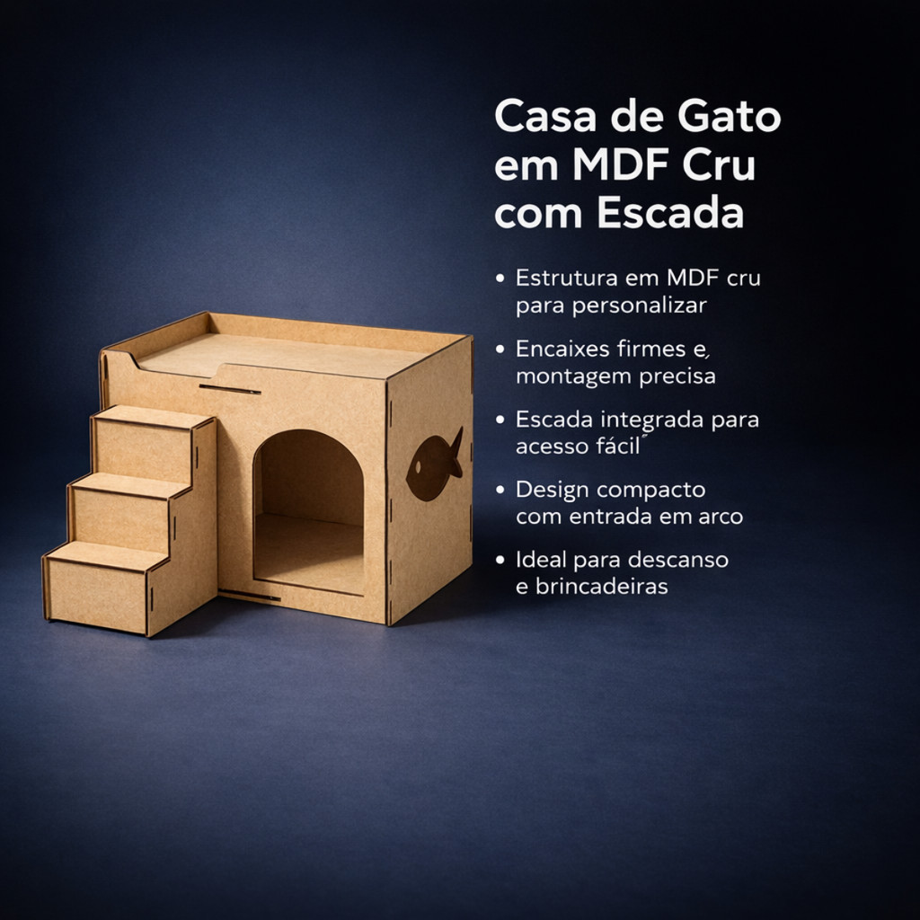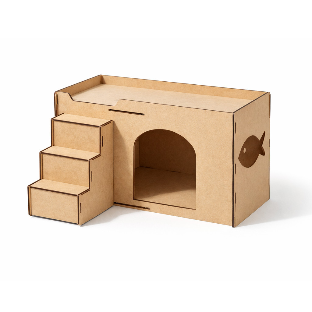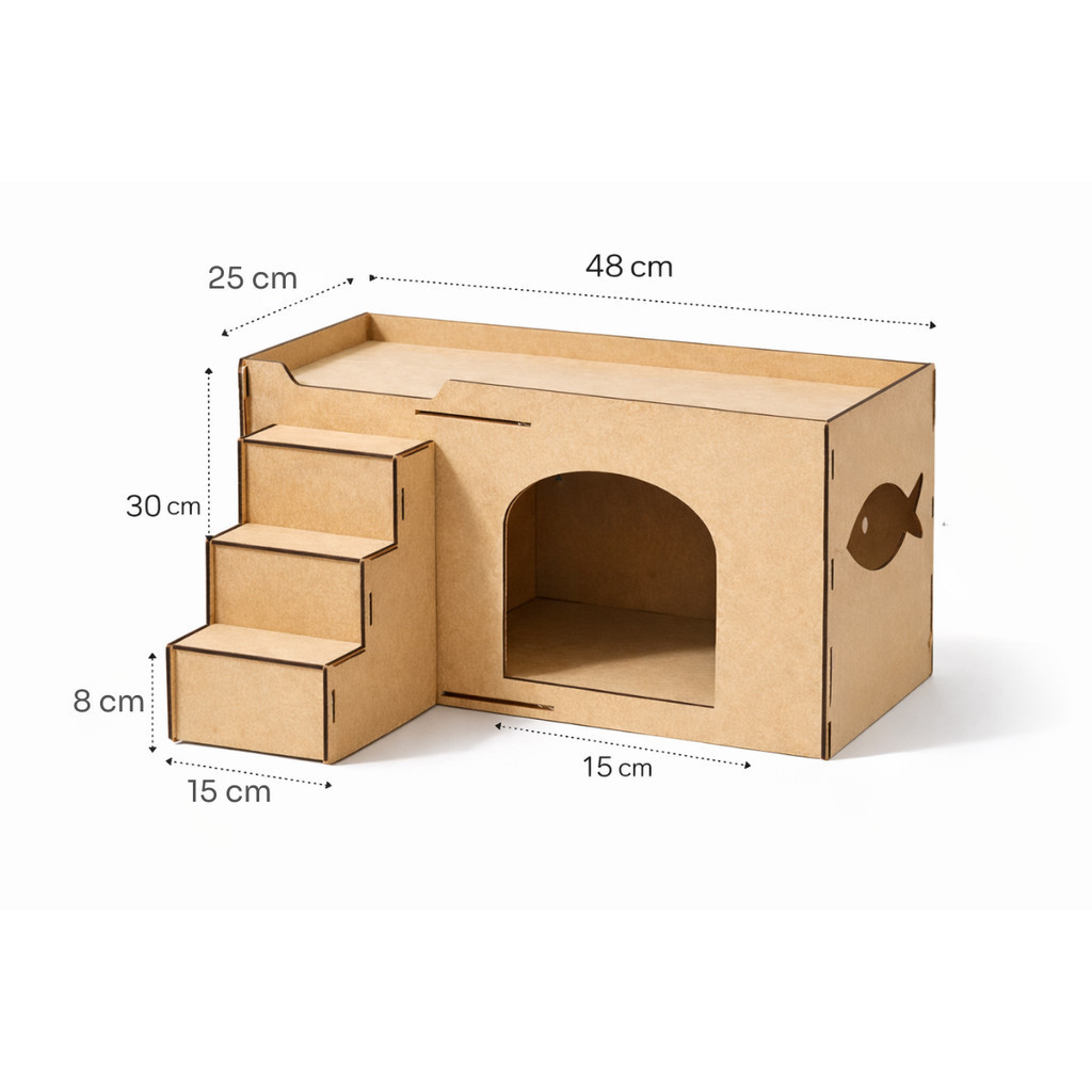 Toca para Gato MDF Cru com Escada Casinha Pet Estilo Moderno