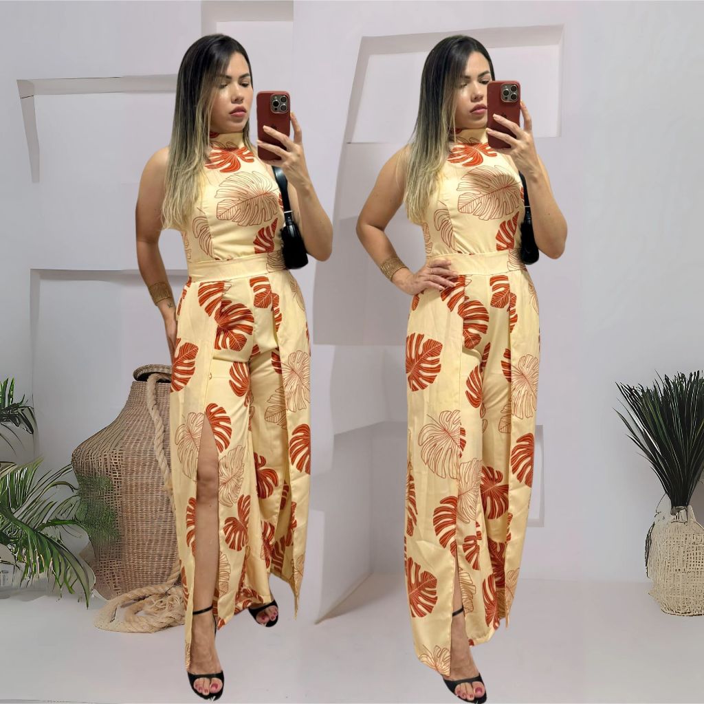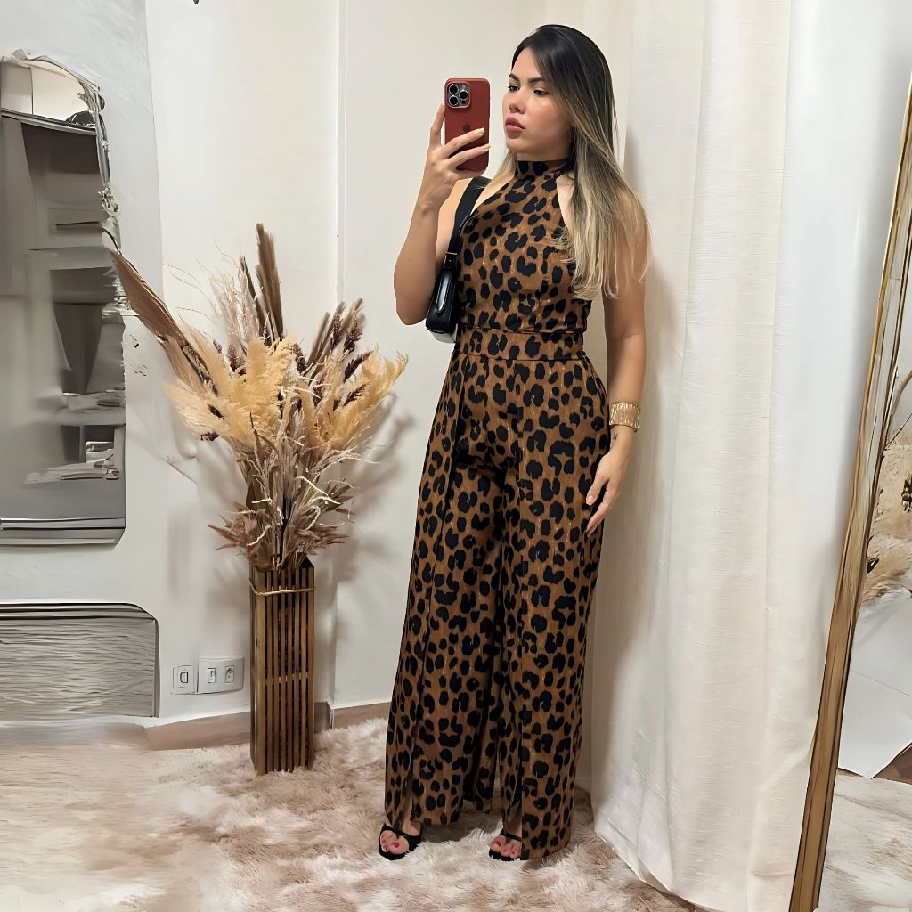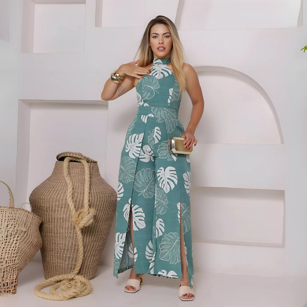 Macacão longo feminina estampado costa lastex O macacão é feito de lastex,