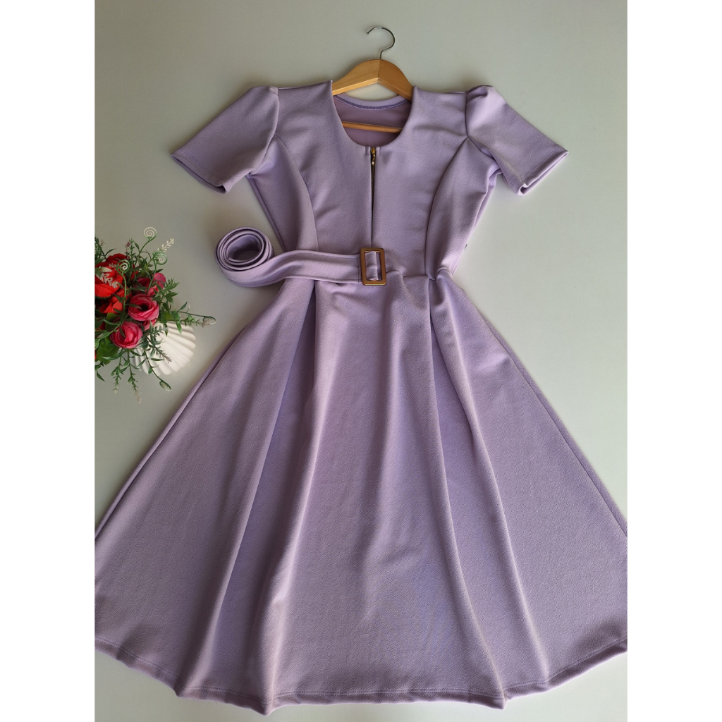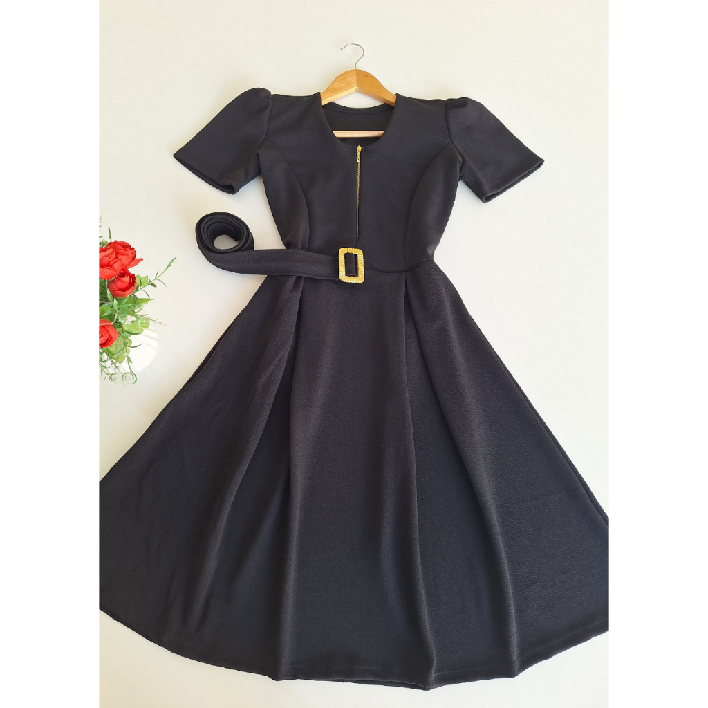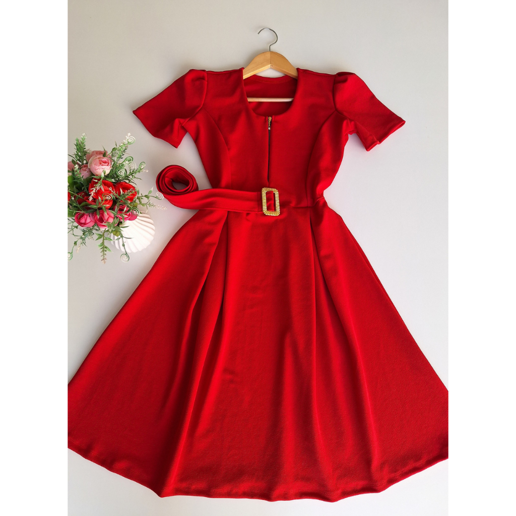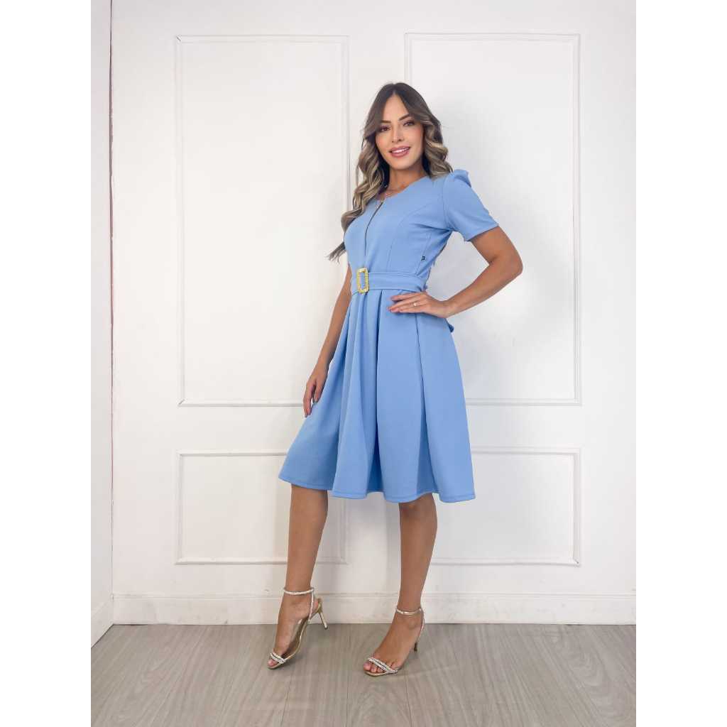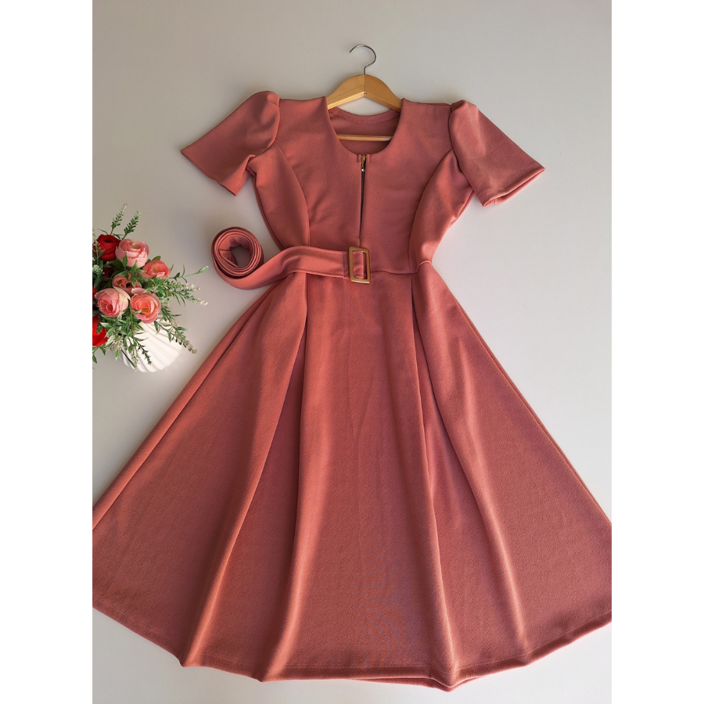Vestido elegante mídi moda evangélica crista crepe de malha premium com zíper - amamentação