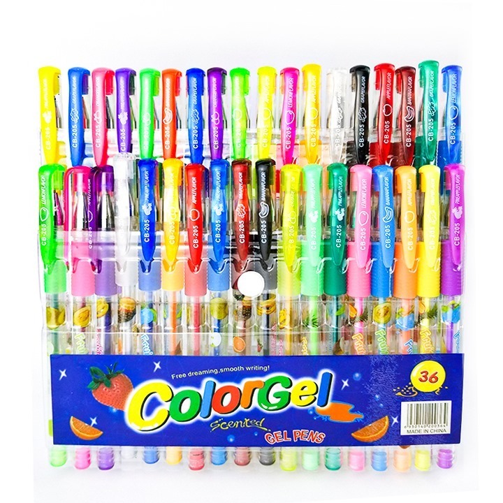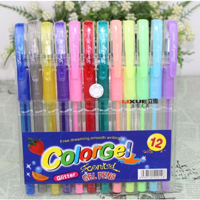 Kit Com 6/8/10/12/24/36 Unidades Canetas Gel Cheirinho de Frutas Coloridas Perfumadas Brilhante Glitter Neon Tons Pastel