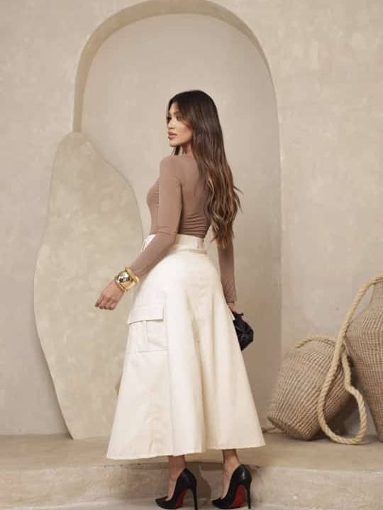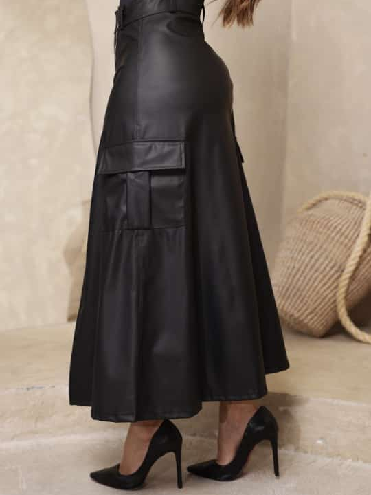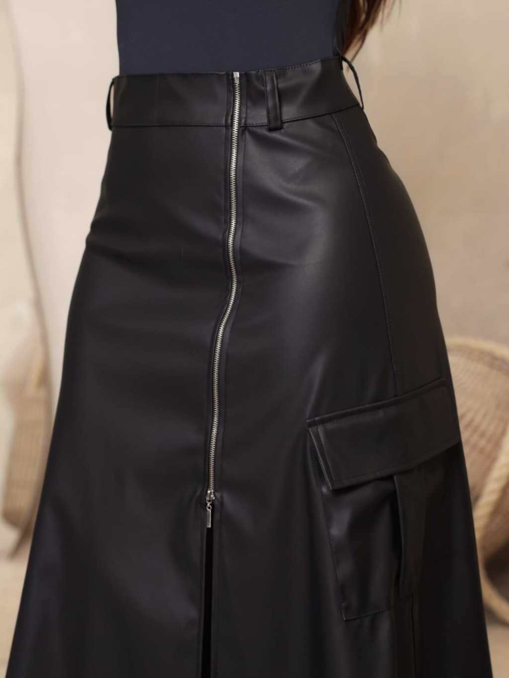 Saia Longa Feminina Couro Ecológico Cintura Alta - Zíper – Valoriza a Silhueta – Estilo Moderno