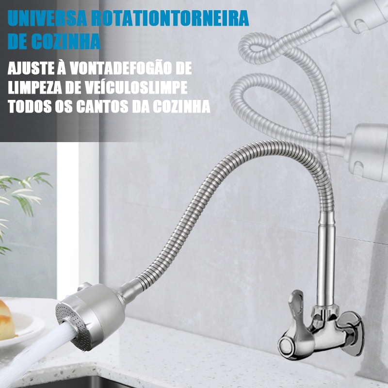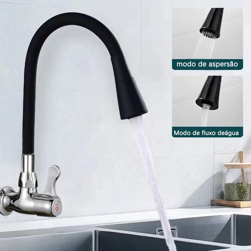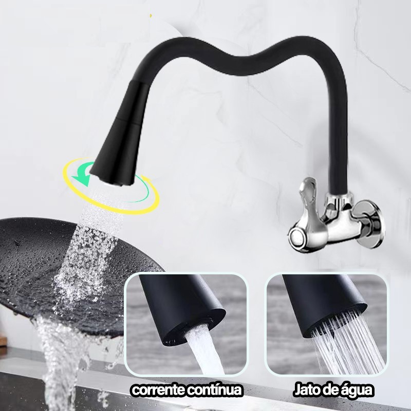 Torneira Gourmet Flexível para Cozinha com Montagem na Parede Preto