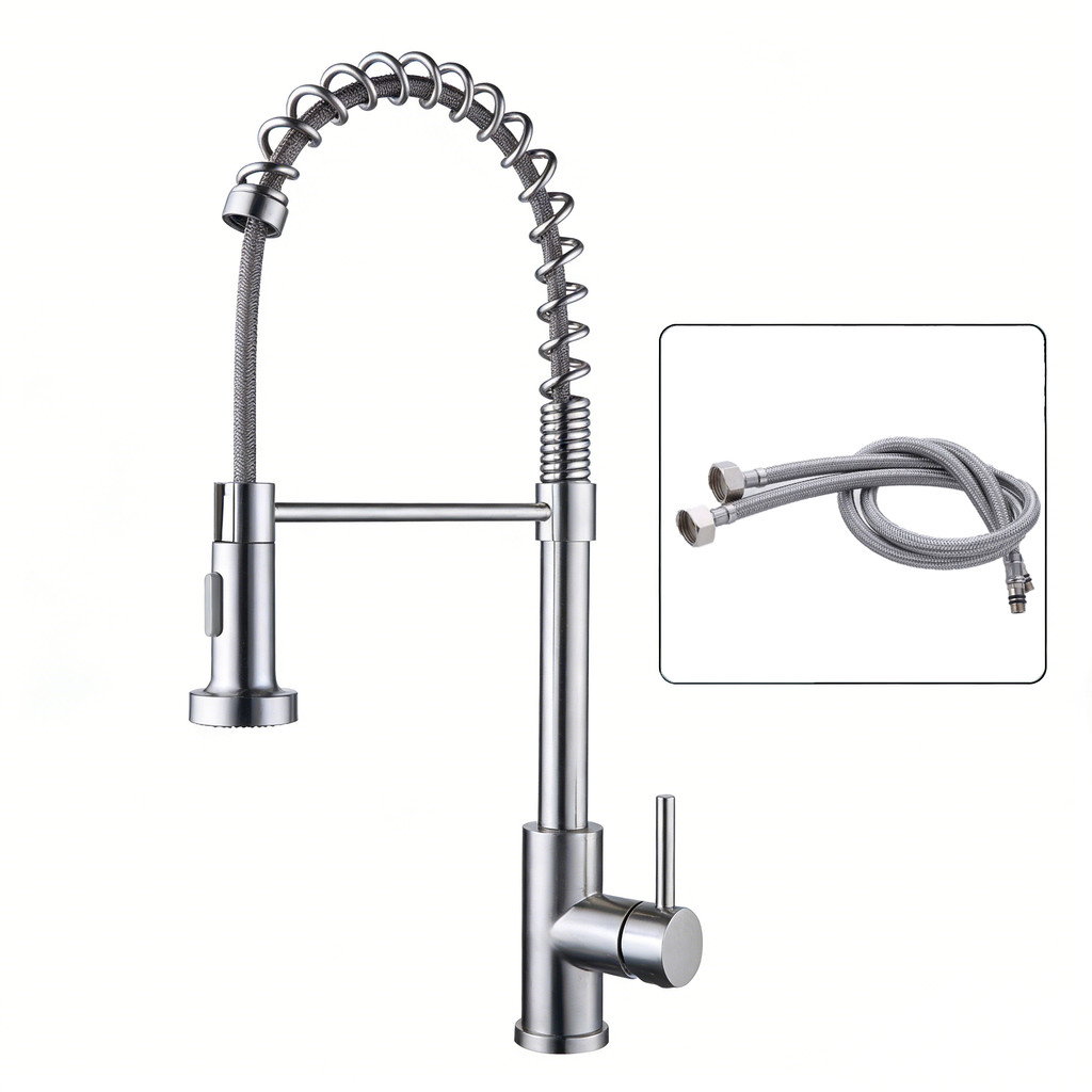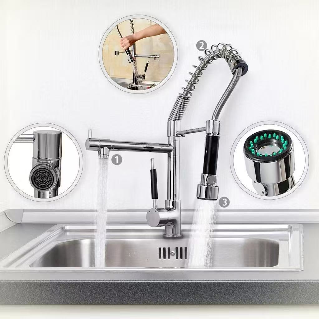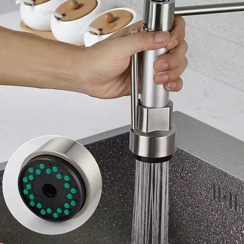 Torneira De Cozinha Gourmet Alça Única Com Extensor De Spray Prata Torneiras Extraíveis Premium 360°