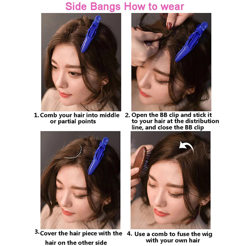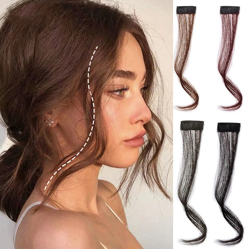 30CM 2 Pçs Longo Encaracolado Franja Clipes Frente Dois Lados Natural Extensão De Cabelo Sintético Parte Média Par Falso
