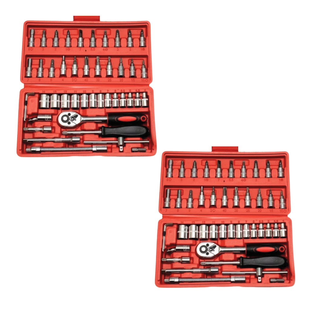 Kit de Ferramentas com 46 Peças + Maleta com Jogo de Soquete Reversível Catraca | Conjunto de Chaves