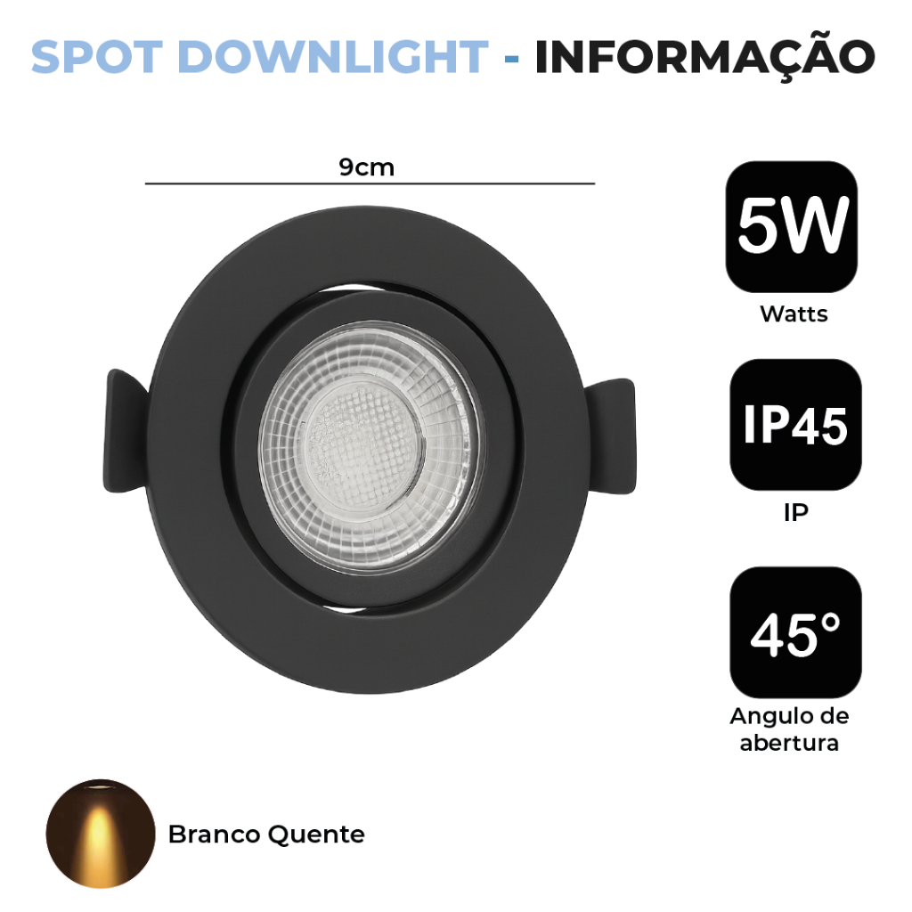 Kit 10 Luminária Spot Led Direcionável Embutir Gesso Teto | Branco Frio | Branco Quente Bivolt