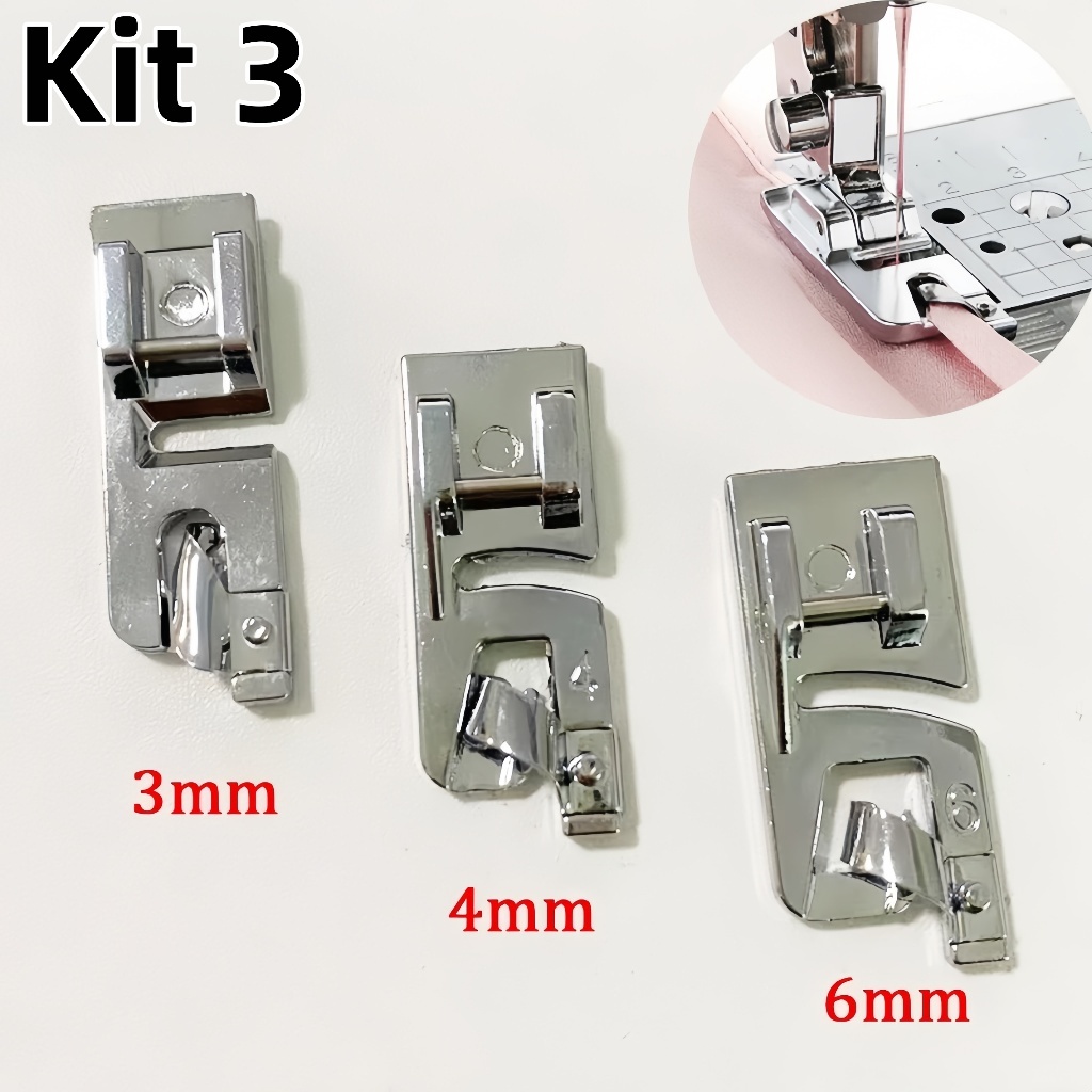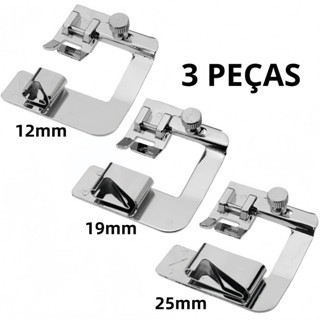 Kit 3 Peças Calcador De Bainha Barra 12, 19, 25mm Para Máquina Doméstica