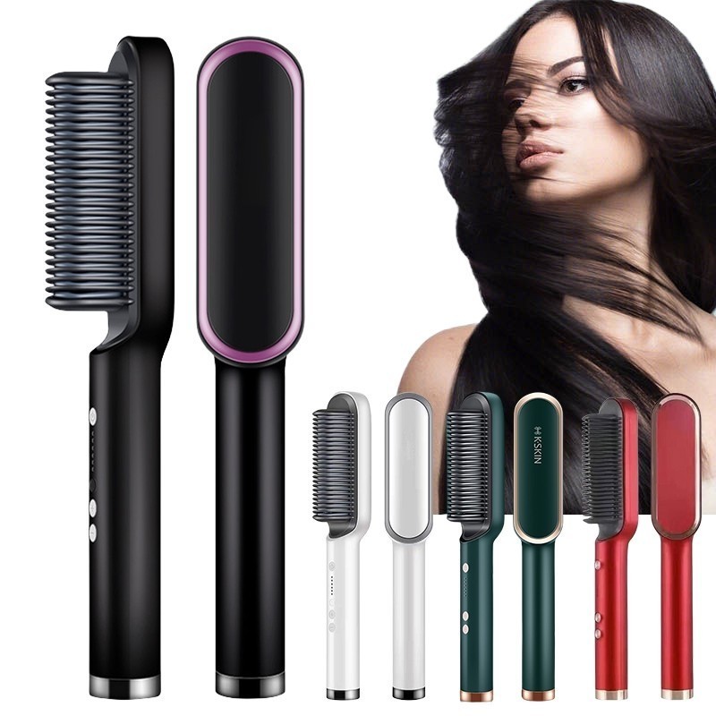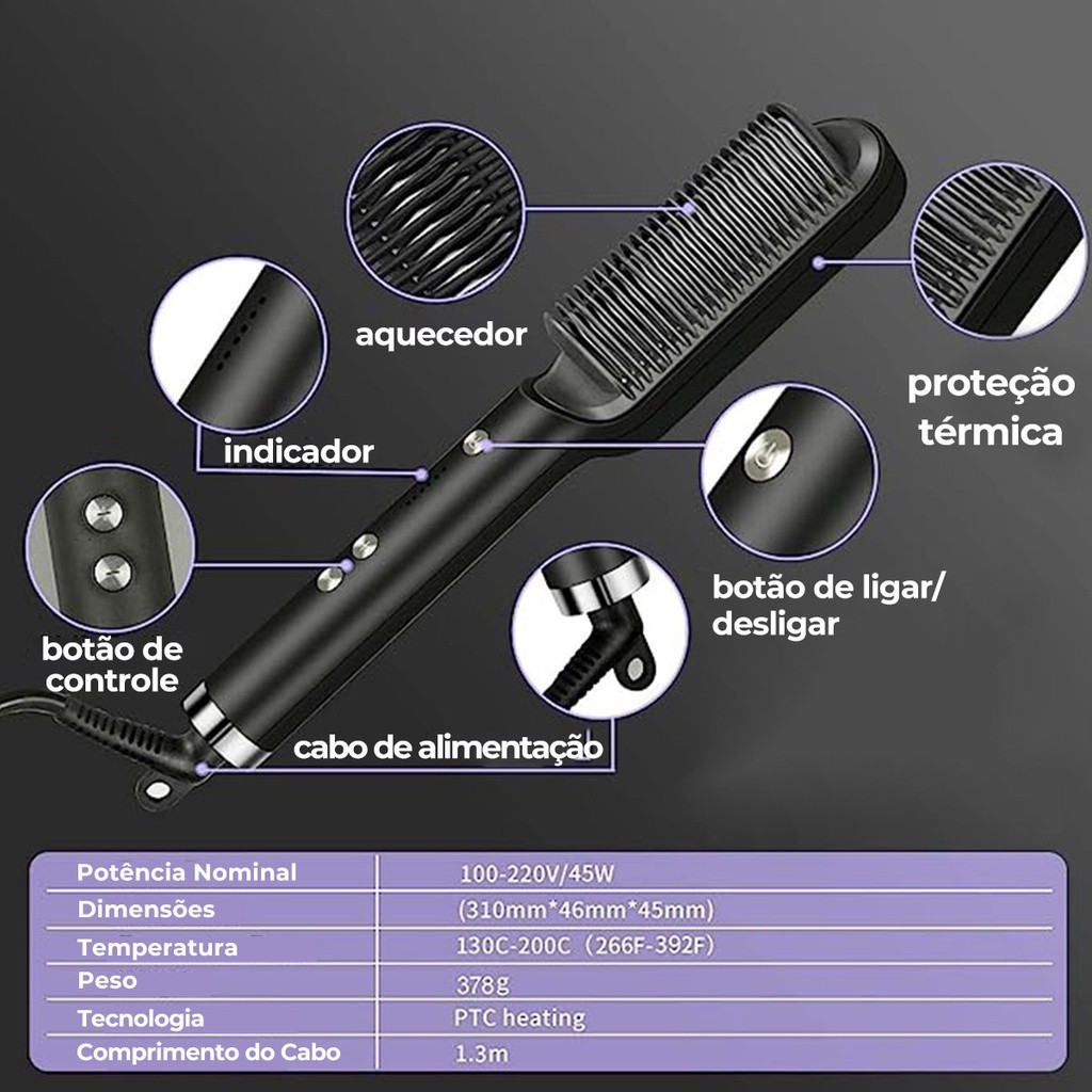 Escova Alisadora Bivolt 5 em 1 - Alisa, Hidrata, Modela, Alinha e Anti-Frizz 110V