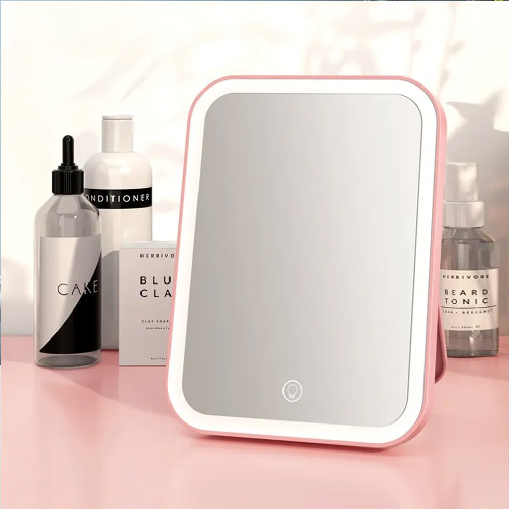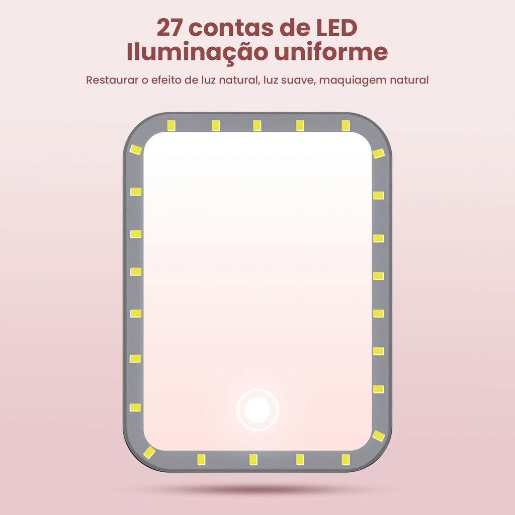 Espelho de Maquiagem LED Recarregável USB - 3 Camadas com Toque Sensível e 3 Níveis de Iluminação