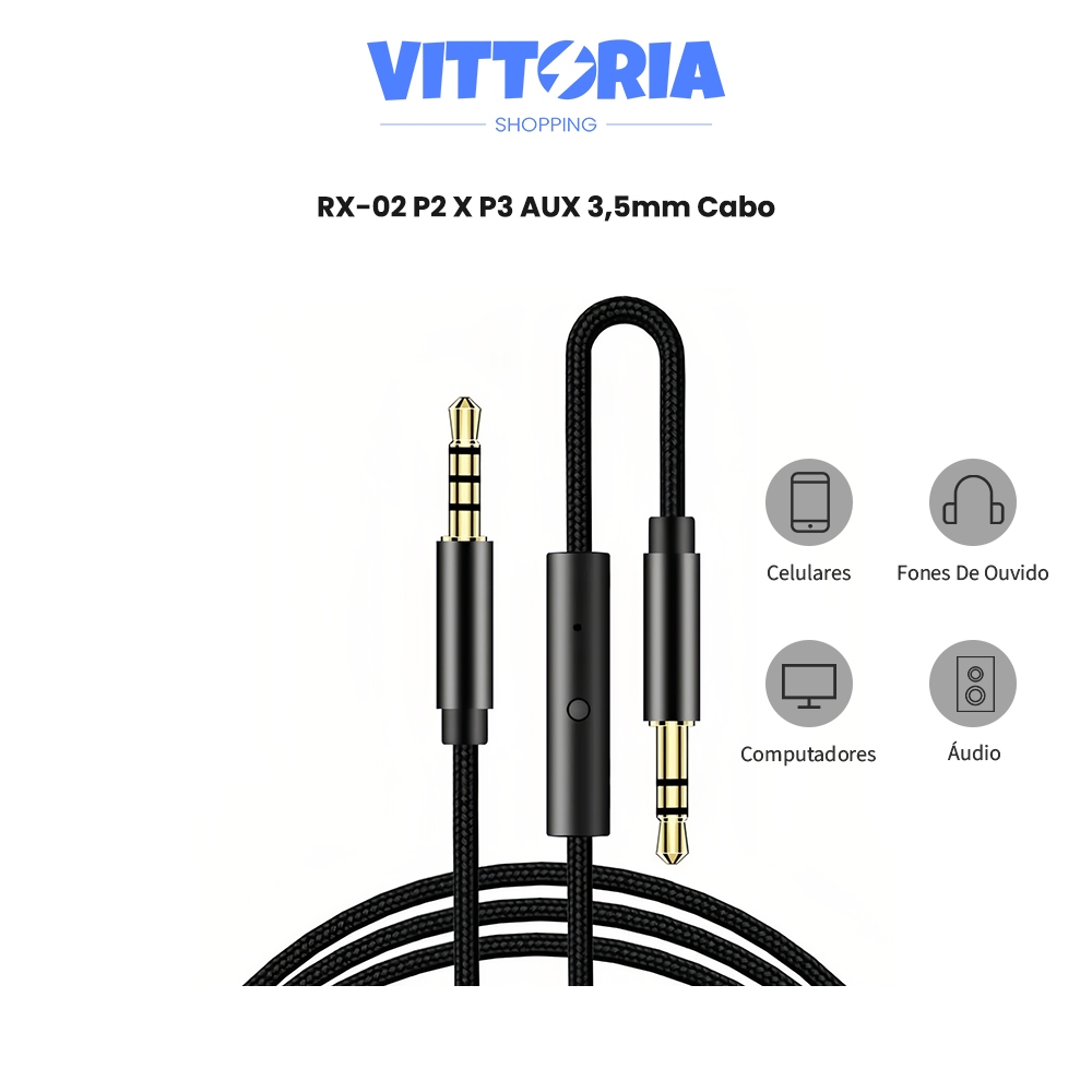 RX-02 P2 X P3 Cabo 3,5mm Cabo De Áudio Com Microfone Para Celular/Headphone/Computador