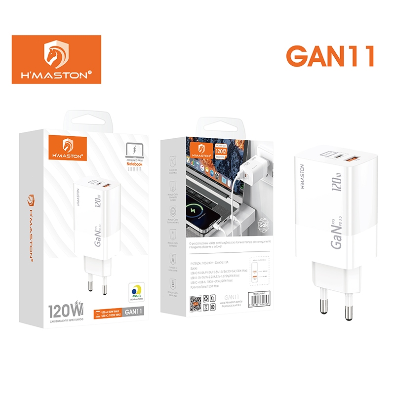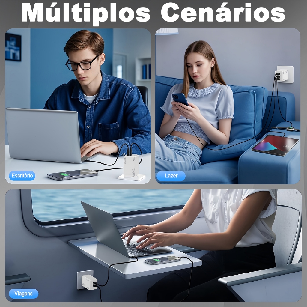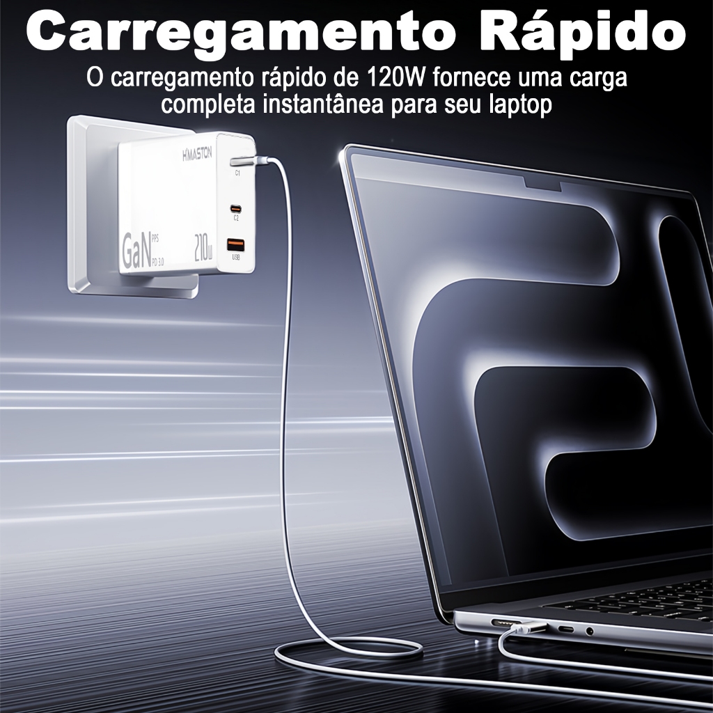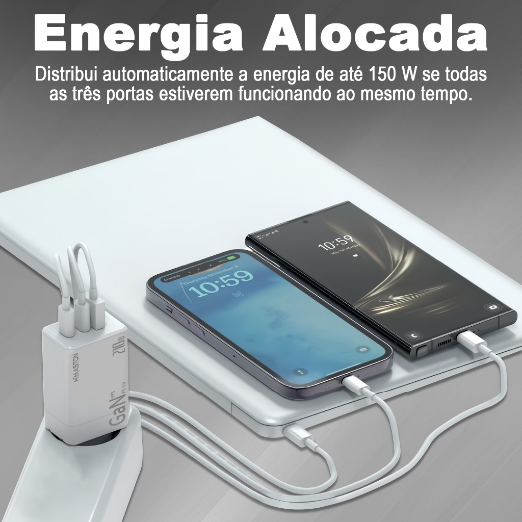Carregador GaN 210W Turbo USB-C+USB-A 3 Portas Carga Rápida Cor Branco Gan10