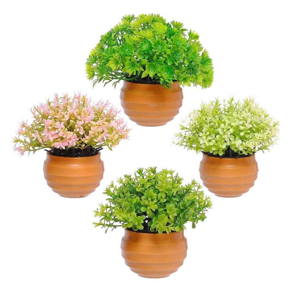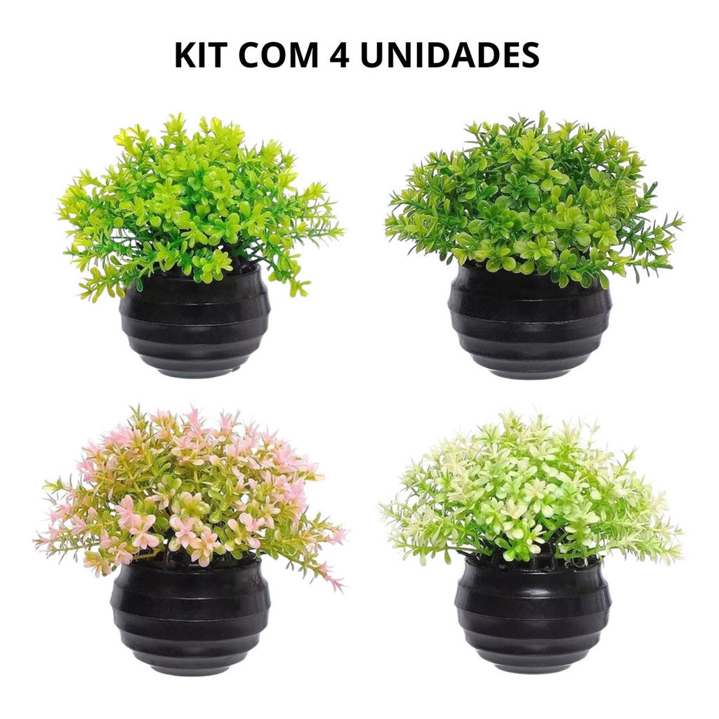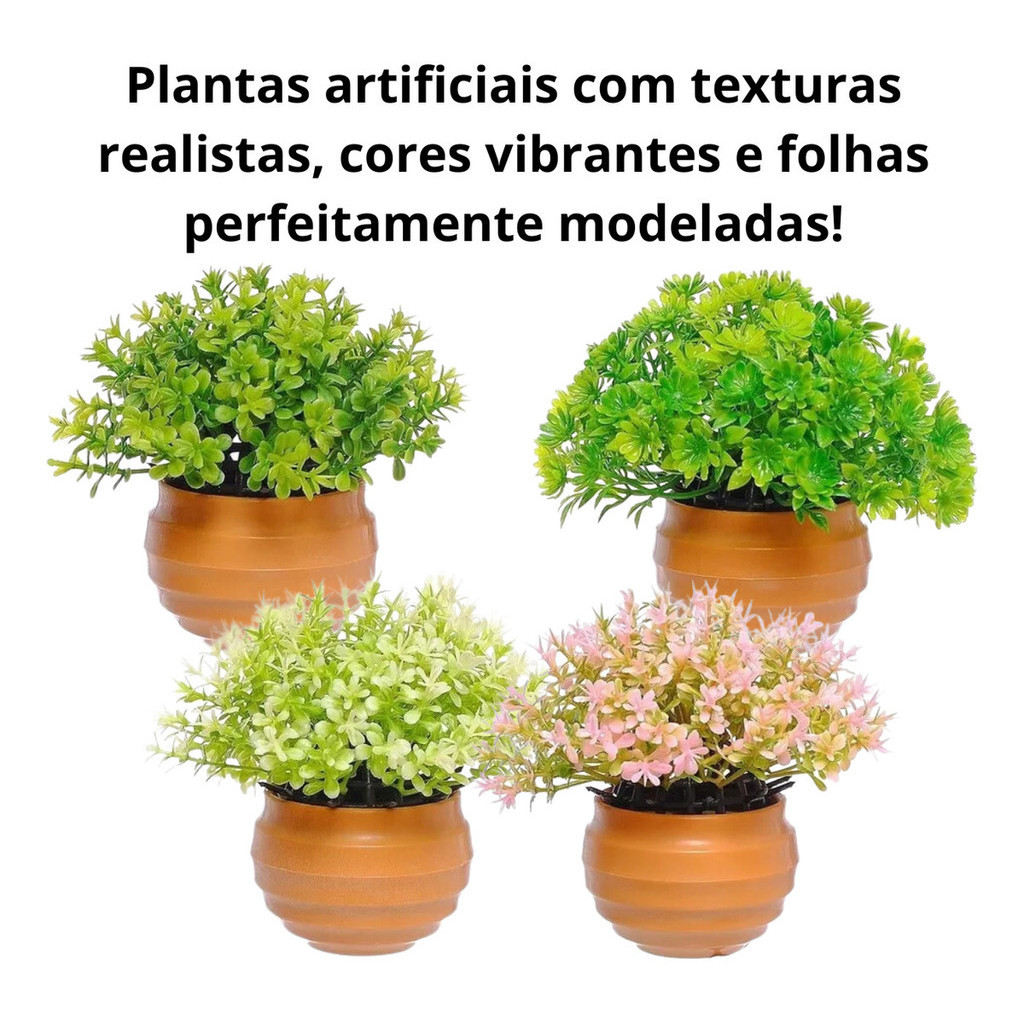 Vasinhos De Plantas Flores Artificial Decoração Kit 4 Vasos