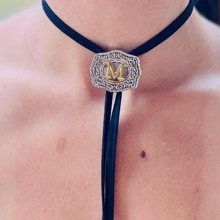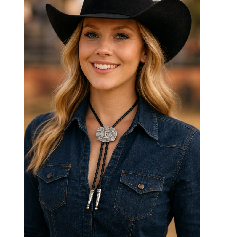 Gravatinha Colar Choker Boho Chic Country Com Inicial Couro Trançado Elegante Exclusivo Moda Rodeio Festa