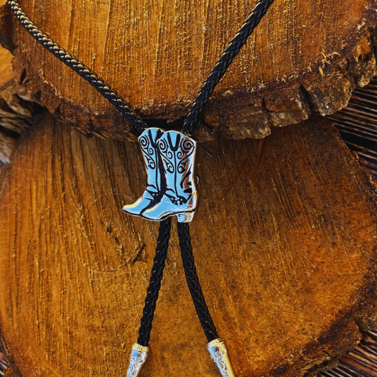 Gravatinha Country Estilo Bolo Tie Bota texana Rodeio Promoção Barretos